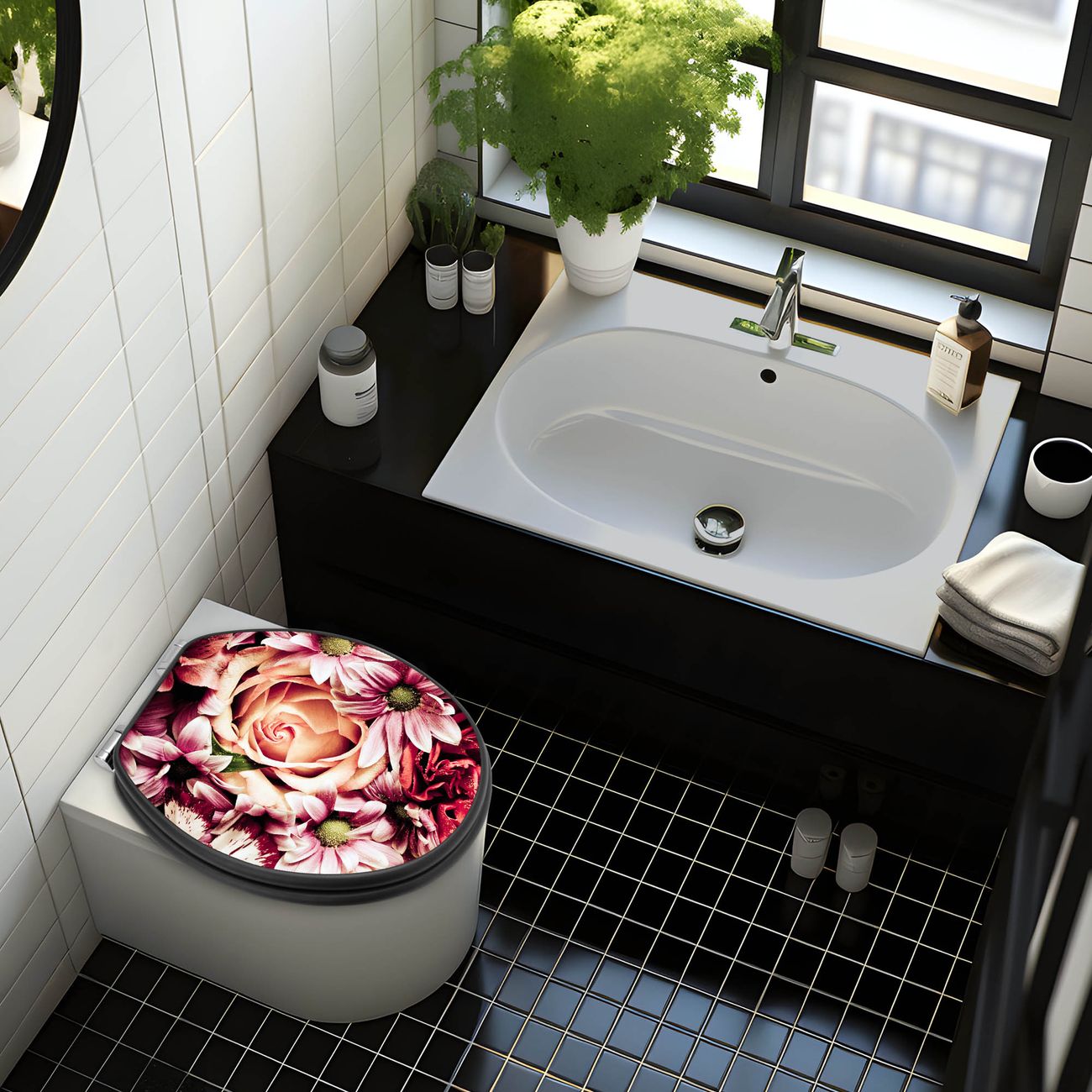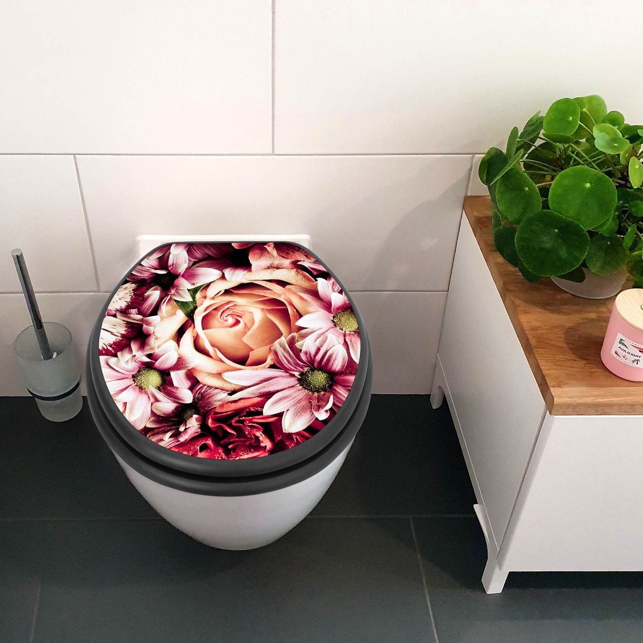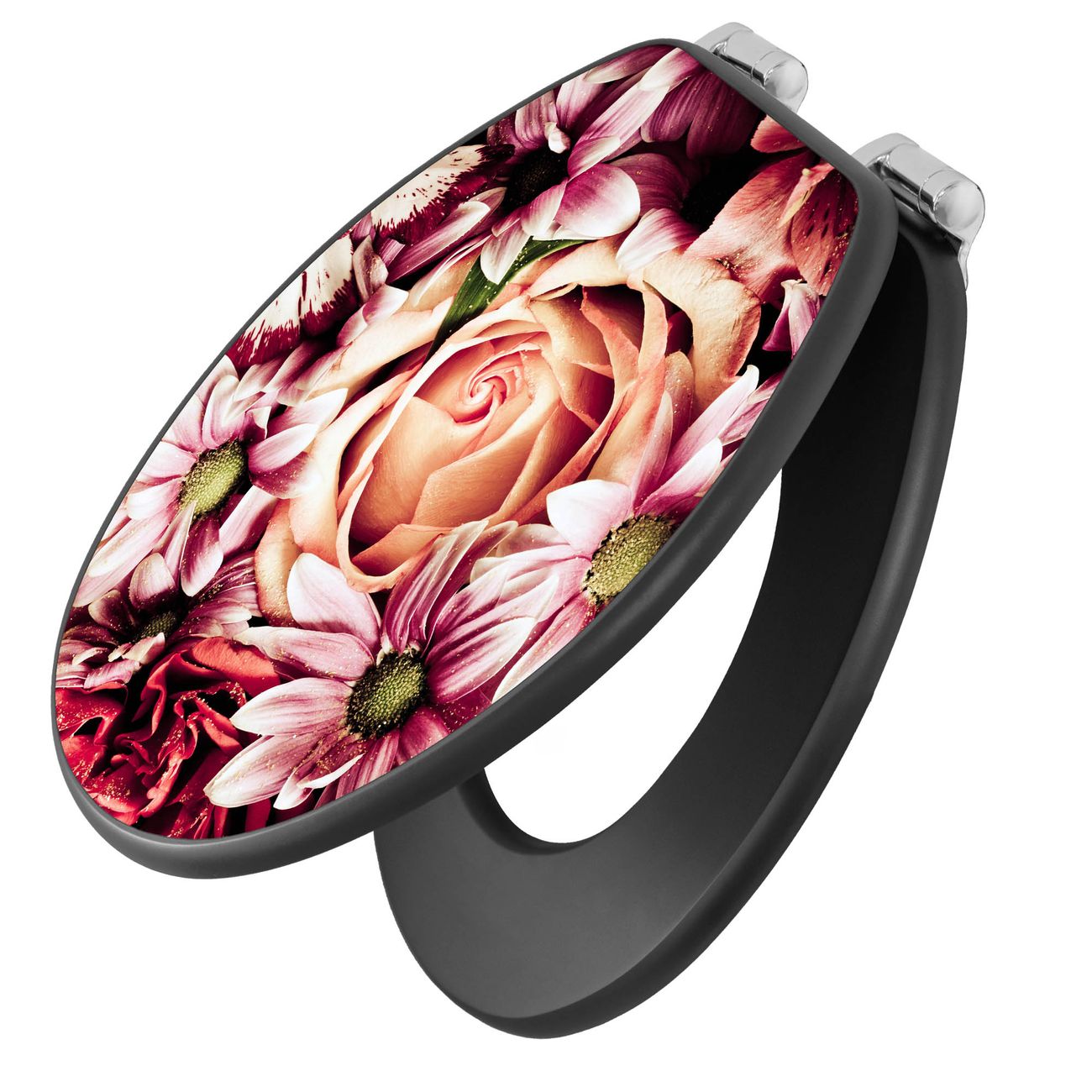 WC Sitz Anthrazit mit Absenkautomatik Motiv Brautstrauss