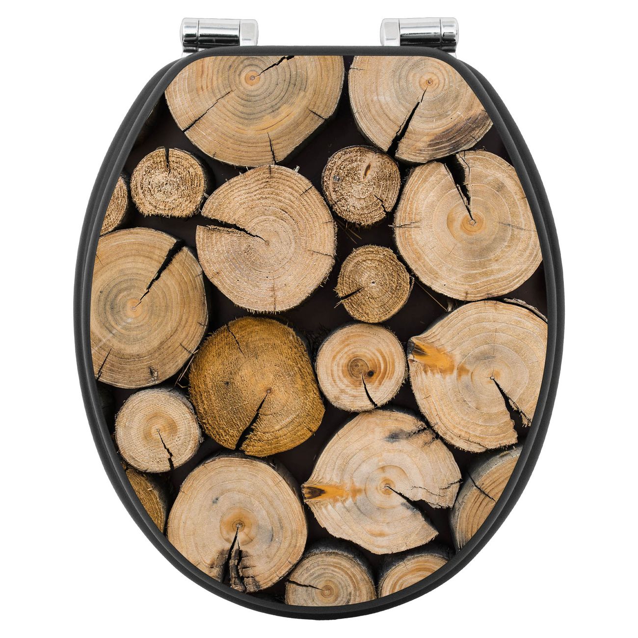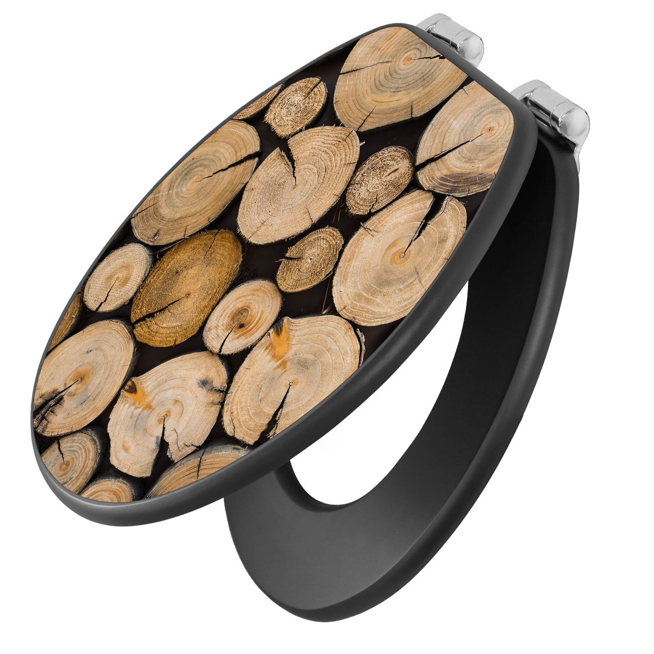 WC Sitz Anthrazit mit Absenkautomatik Motiv Brennholz
