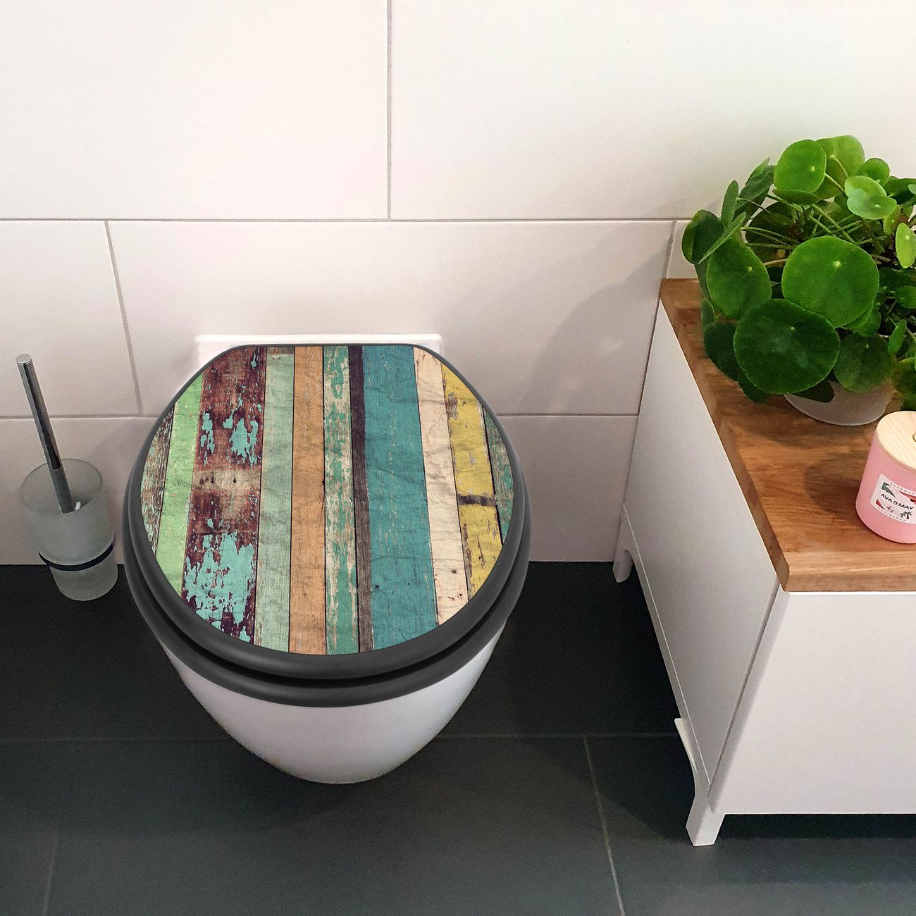 WC Sitz Anthrazit mit Absenkautomatik Motiv Bunte Bretterwand