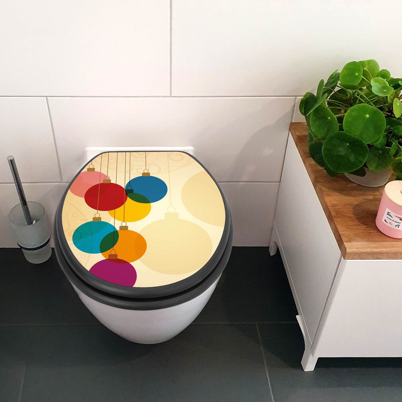 WC Sitz Anthrazit mit Absenkautomatik Motiv Bunte Kugeln