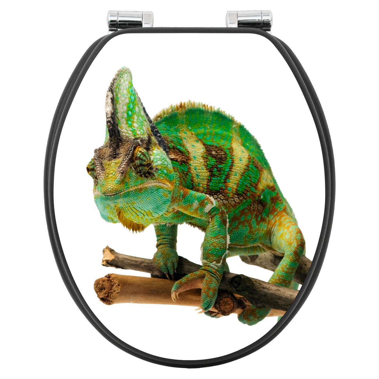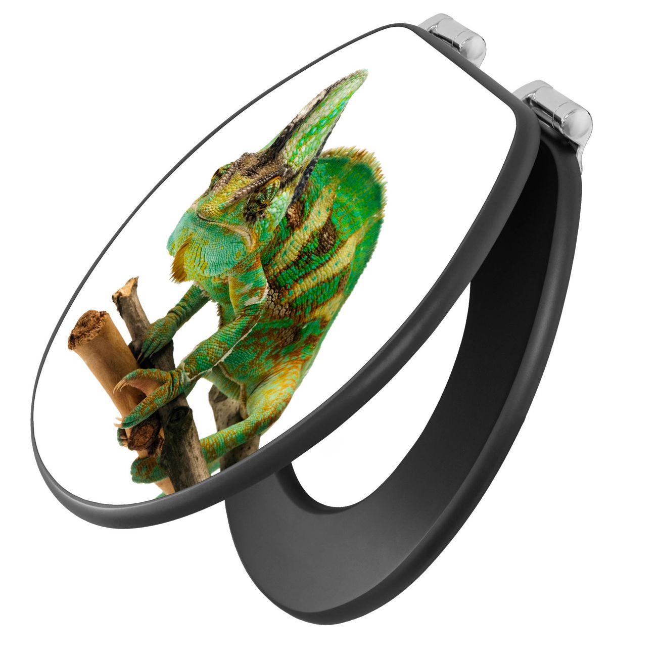 WC Sitz Anthrazit mit Absenkautomatik Motiv Chamäleon