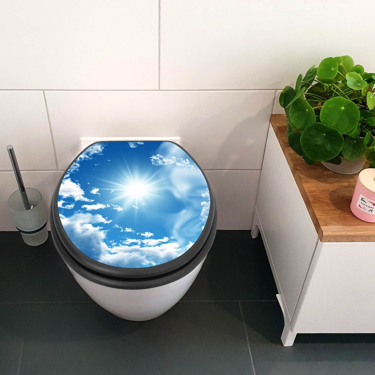 WC Sitz Anthrazit mit Absenkautomatik Motiv Clouds
