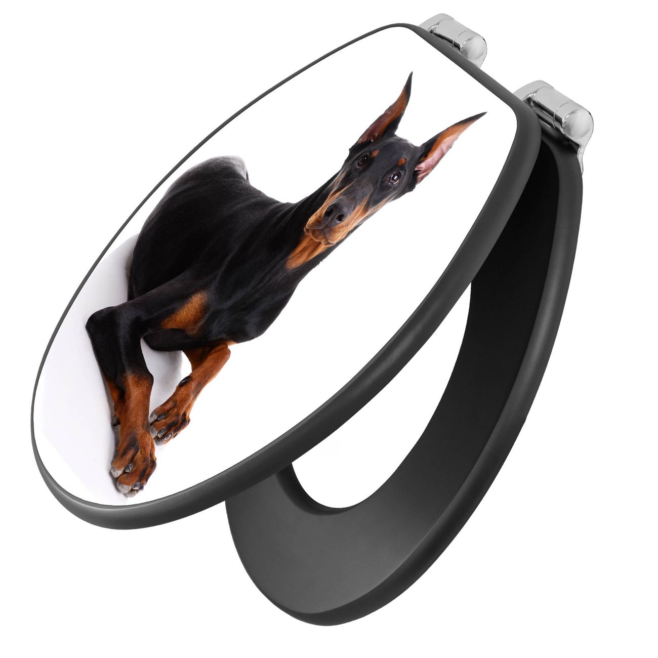 WC Sitz Anthrazit mit Absenkautomatik Motiv Dobermann