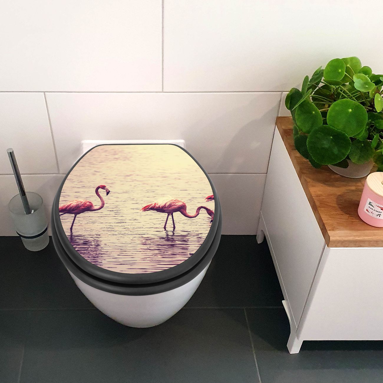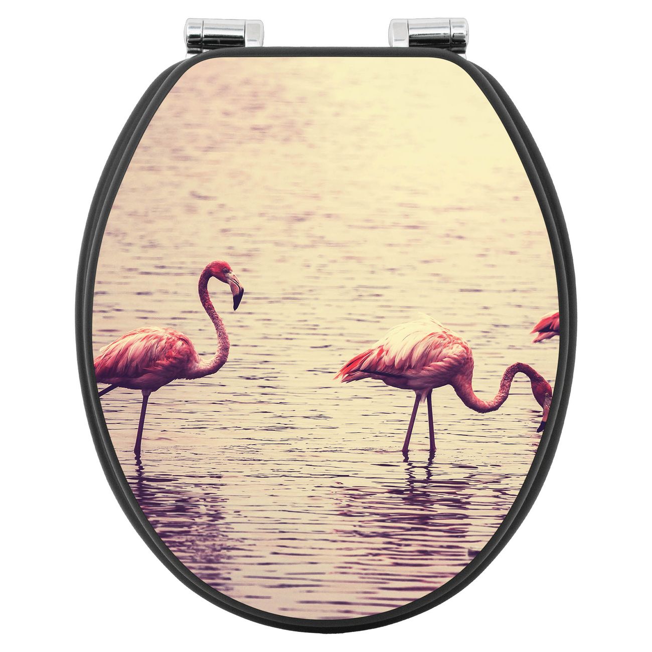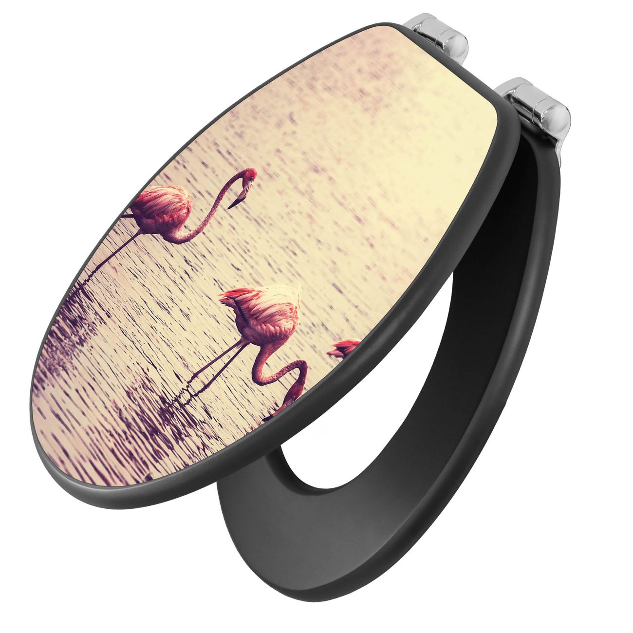 WC Sitz Anthrazit mit Absenkautomatik Motiv Drei Flamnigos