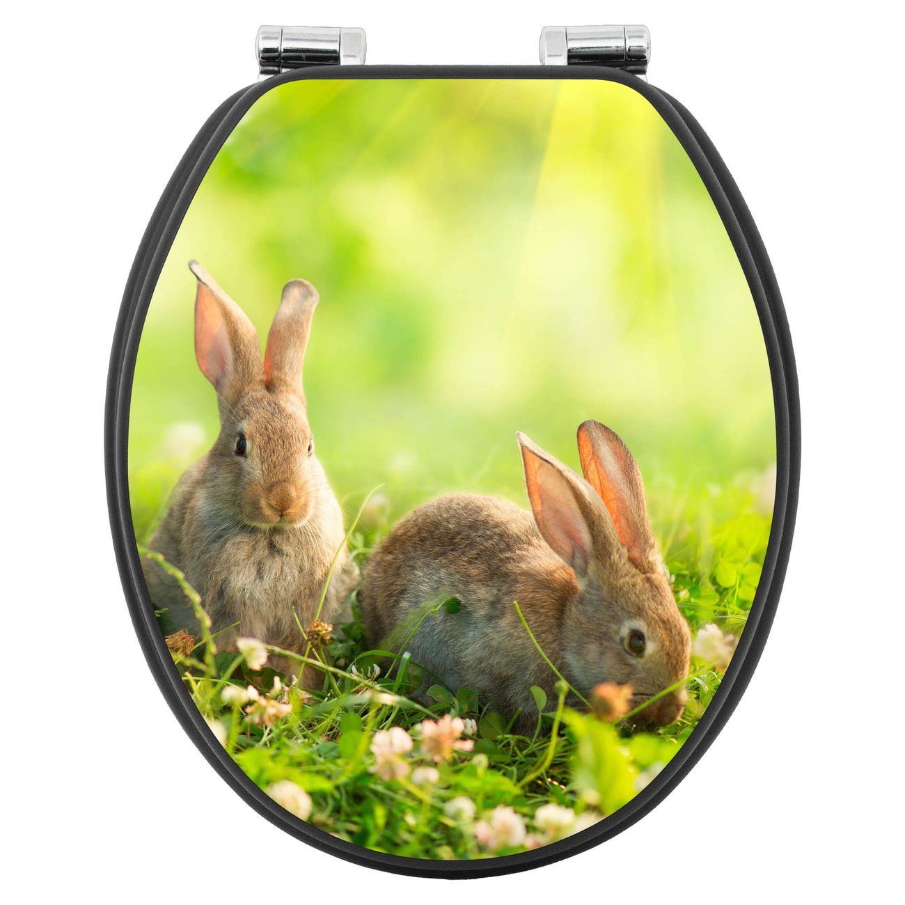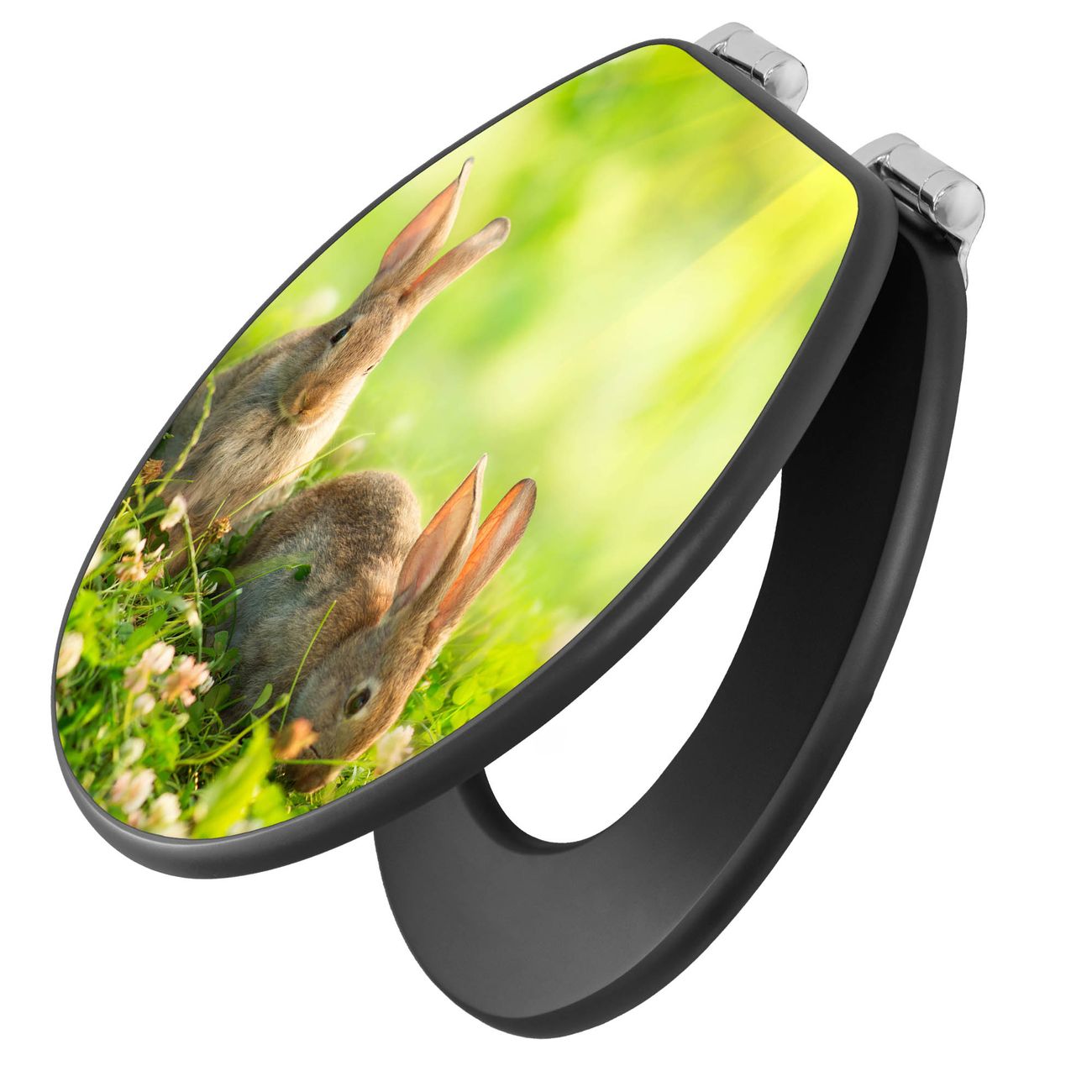 WC Sitz Anthrazit mit Absenkautomatik Motiv Drei Hasen