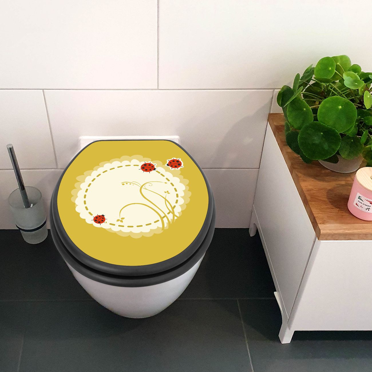 WC Sitz Anthrazit mit Absenkautomatik Motiv Drei Marienkäfer