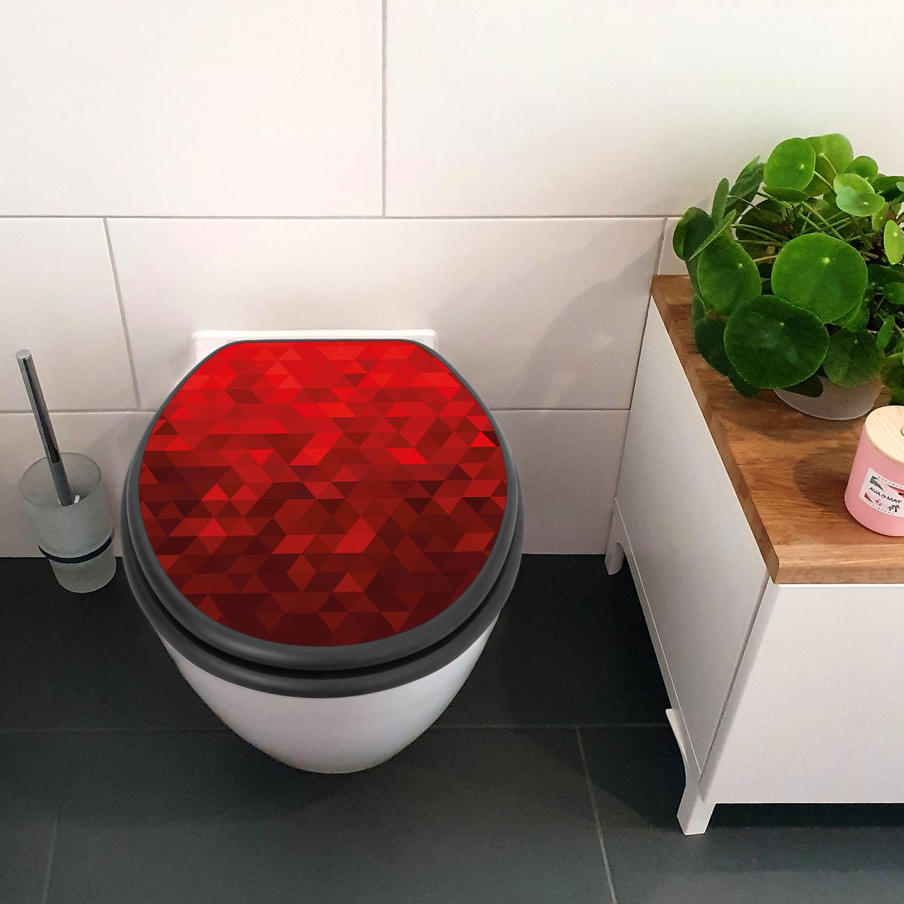 WC Sitz Anthrazit mit Absenkautomatik Motiv Dreiecke Rot