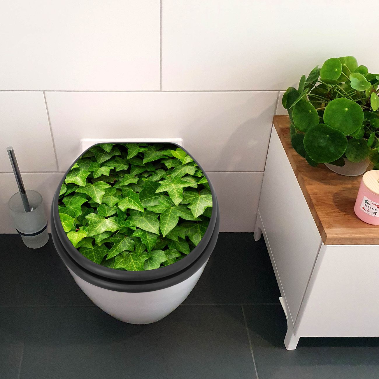 WC Sitz Anthrazit mit Absenkautomatik Motiv Efeu