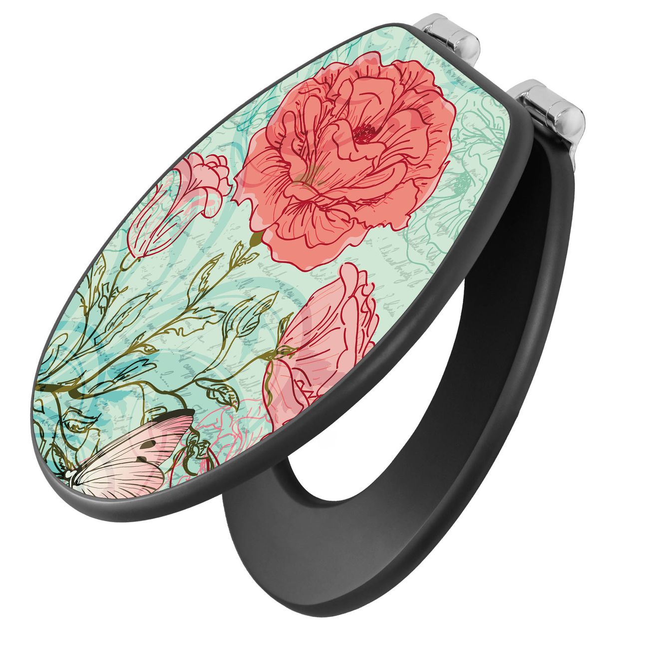 WC Sitz Anthrazit mit Absenkautomatik Motiv Eine Rose Ist Eine Rose
