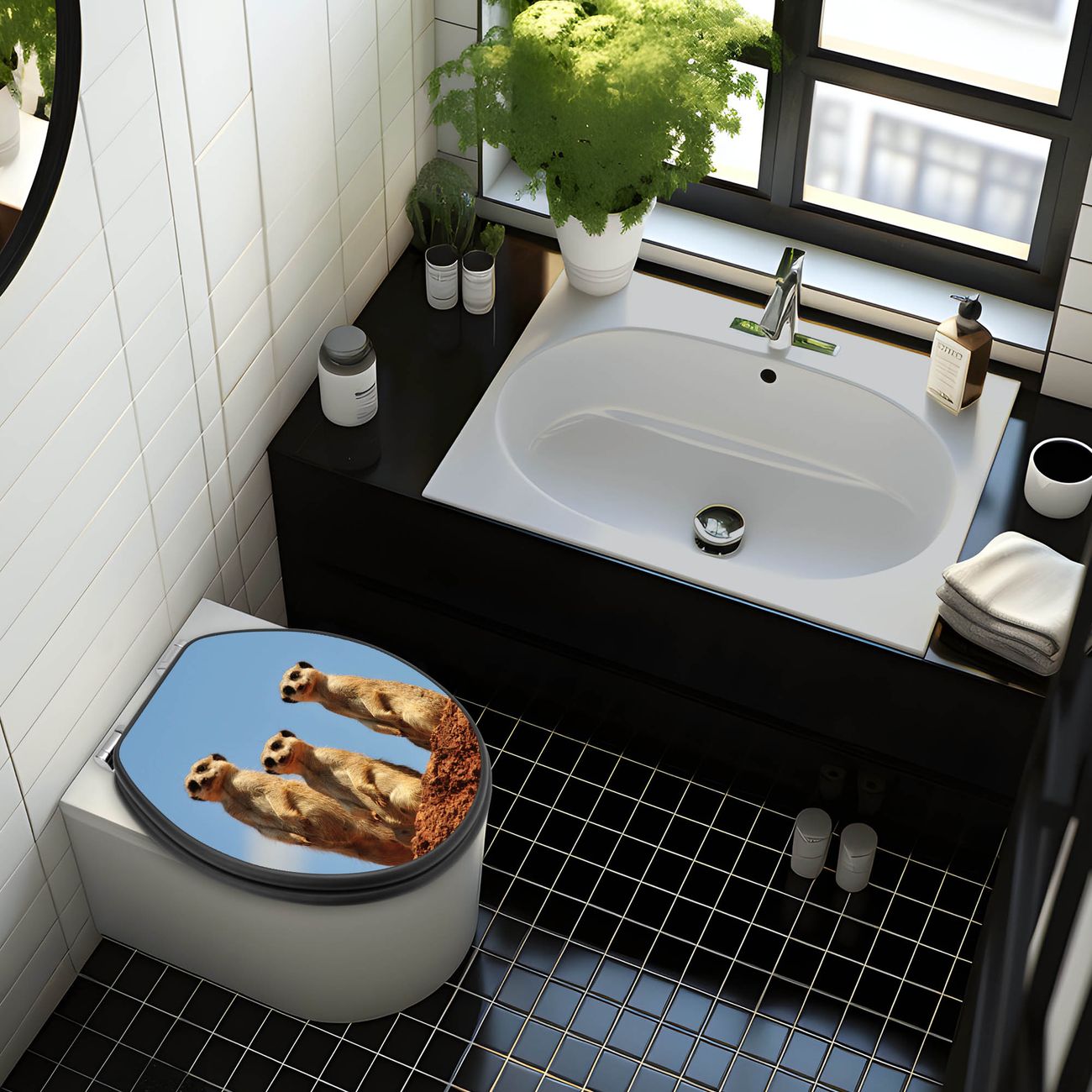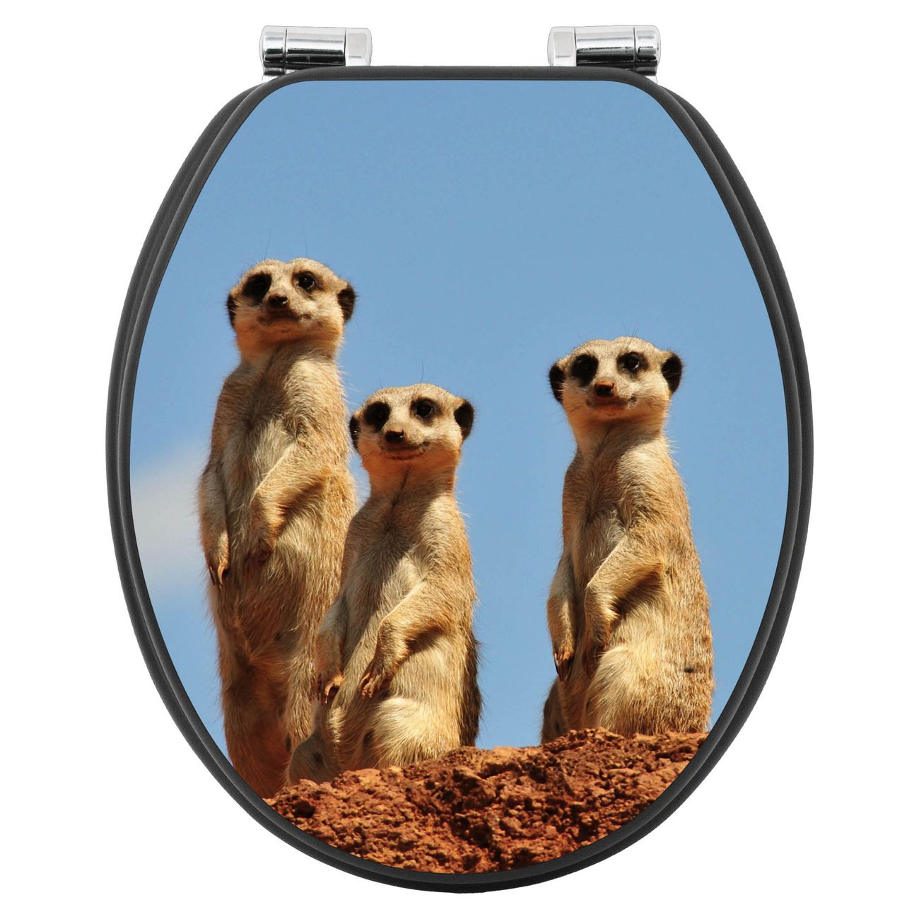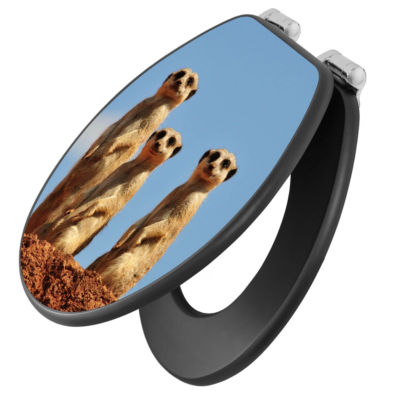 WC Sitz Anthrazit mit Absenkautomatik Motiv Erdmännchenfamilie
