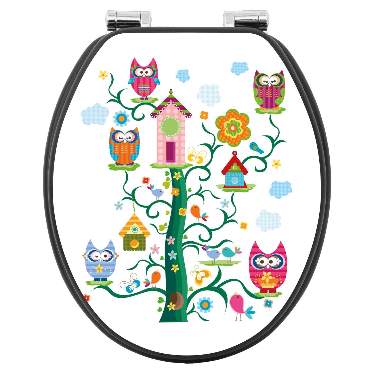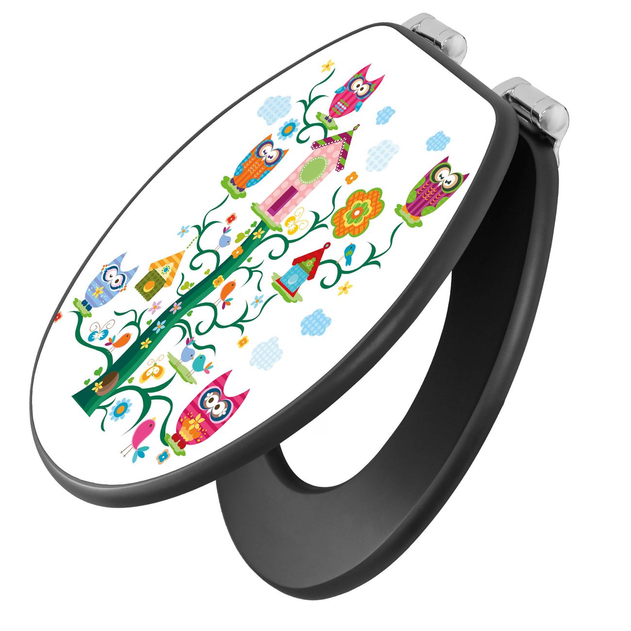 WC Sitz Anthrazit mit Absenkautomatik Motiv Eulenfamilie
