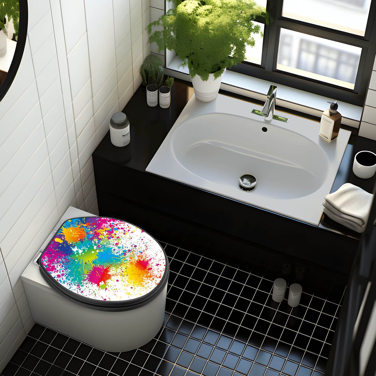 WC Sitz Anthrazit mit Absenkautomatik Motiv Farbspritzer