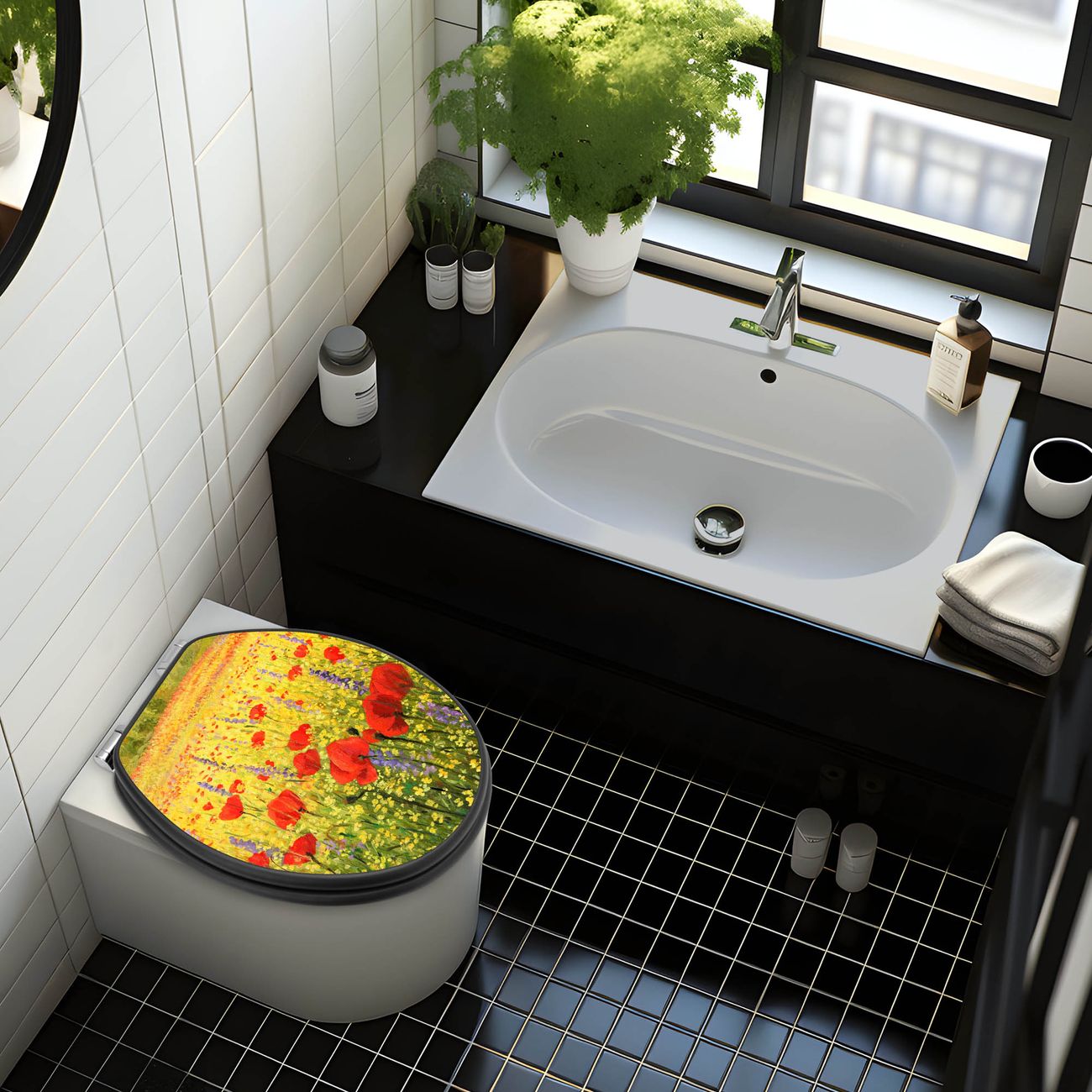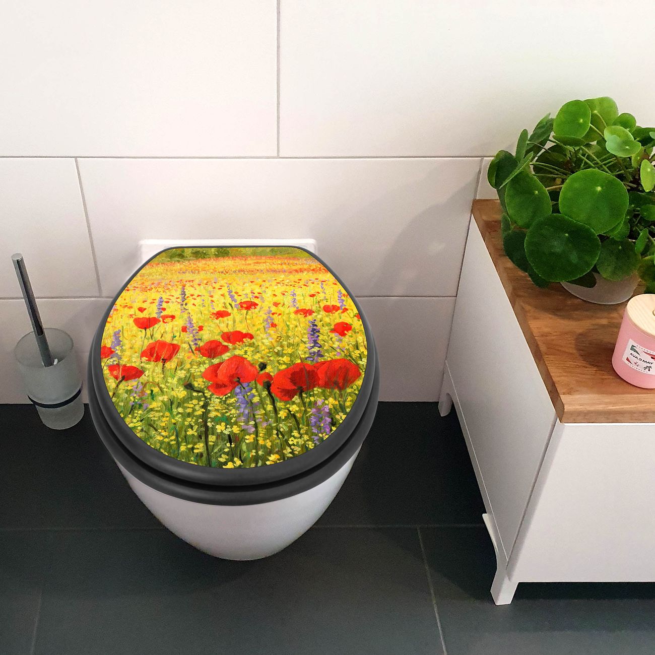 WC Sitz Anthrazit mit Absenkautomatik Motiv Feld Mit Mohnblumen