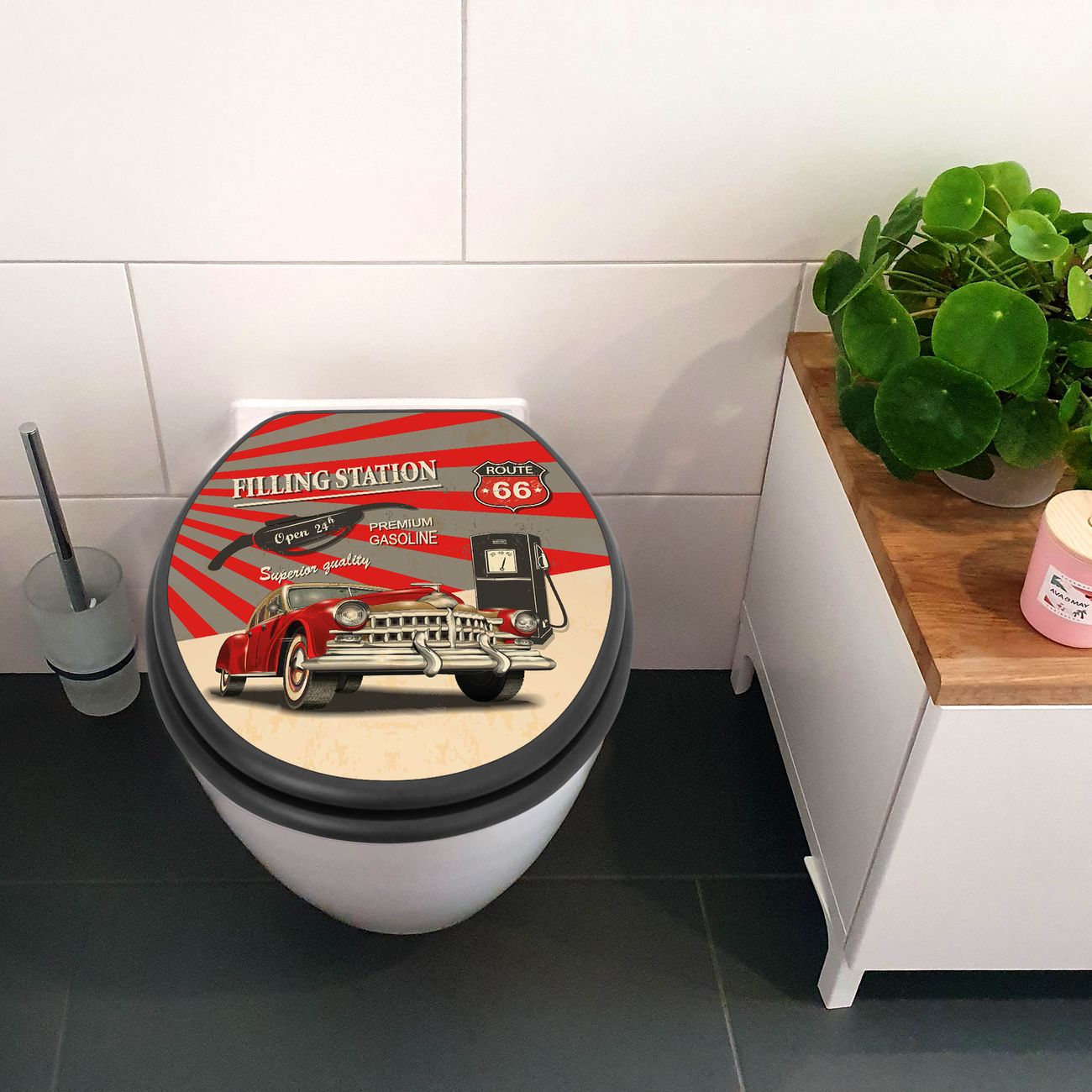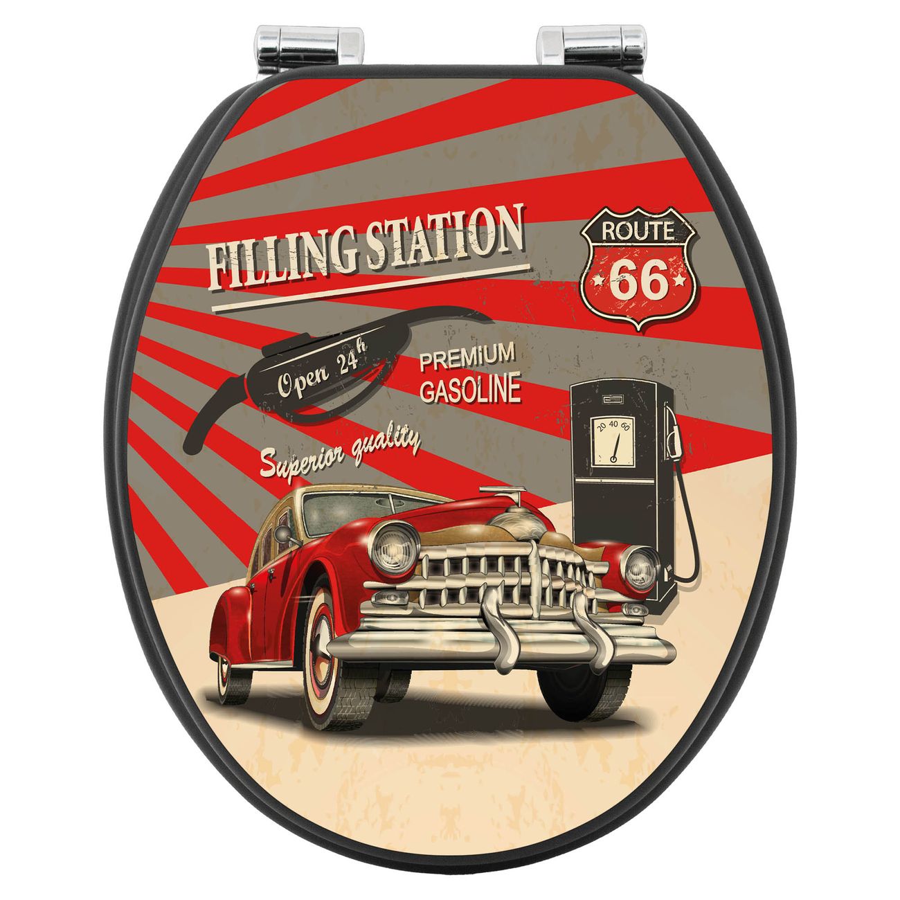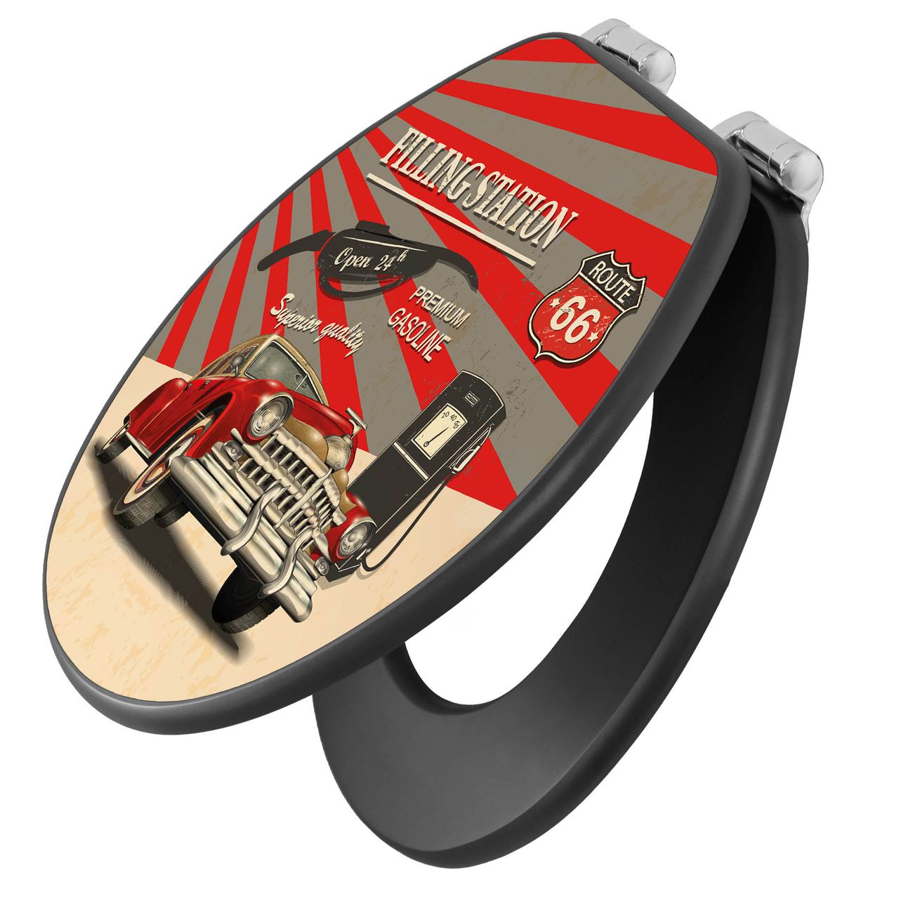WC Sitz Anthrazit mit Absenkautomatik Motiv Filling Station