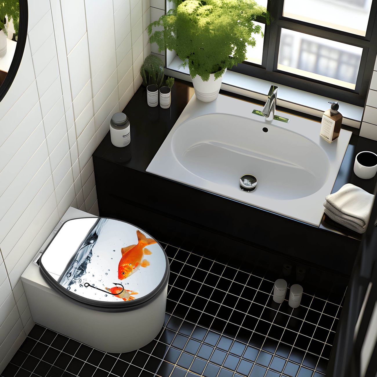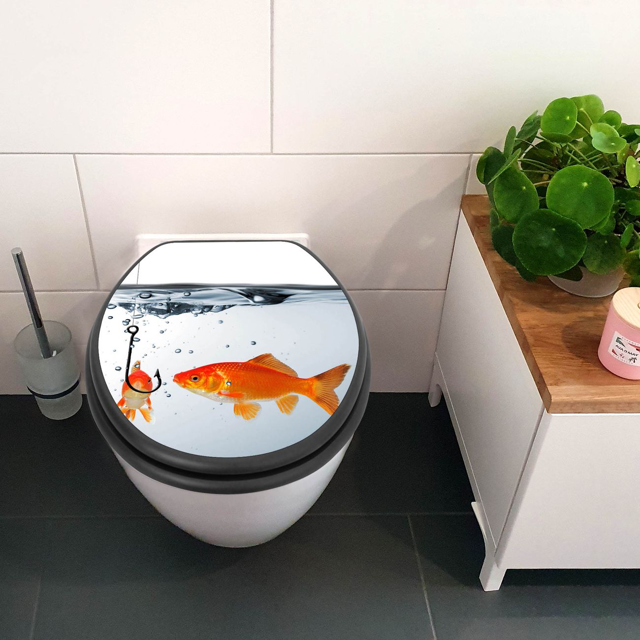 WC Sitz Anthrazit mit Absenkautomatik Motiv Fische