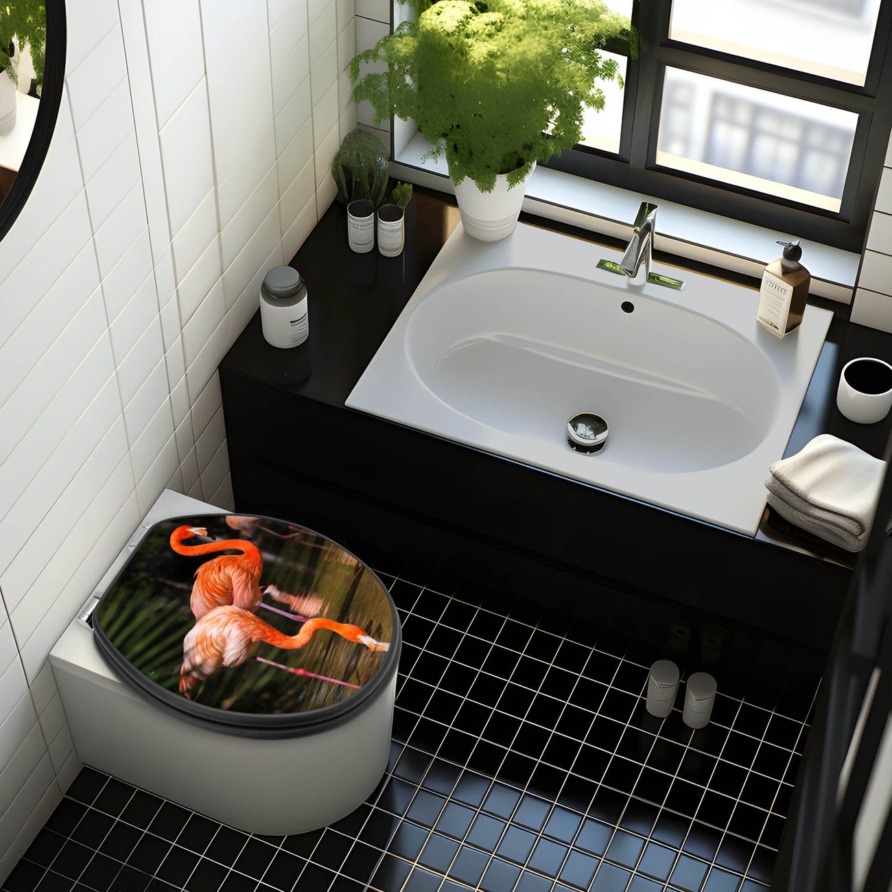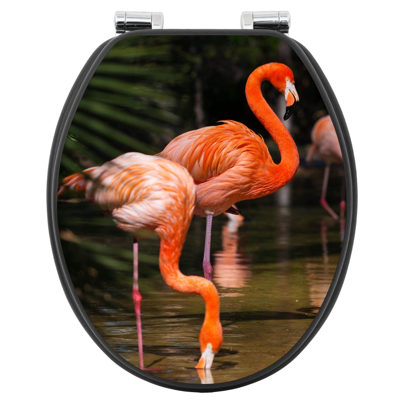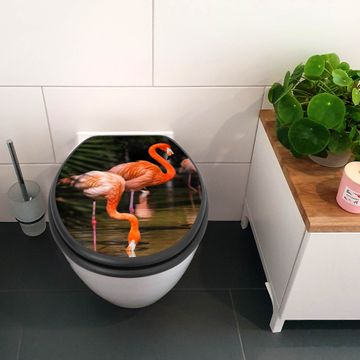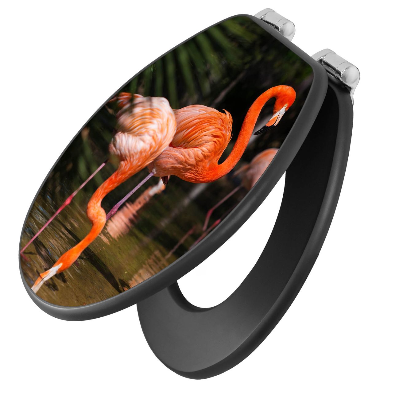 WC Sitz Anthrazit mit Absenkautomatik Motiv Flamingo