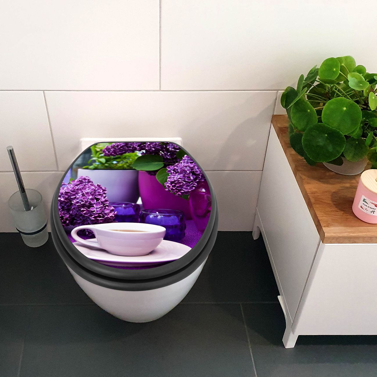 WC Sitz Anthrazit mit Absenkautomatik Motiv Flieder