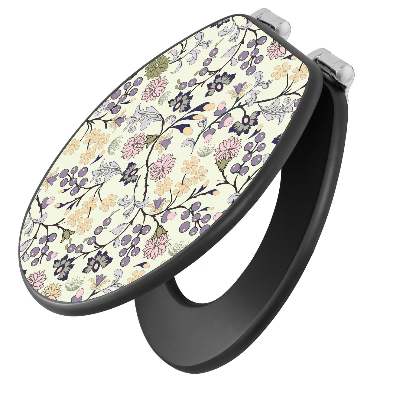 WC Sitz Anthrazit mit Absenkautomatik Motiv Florale Tapete