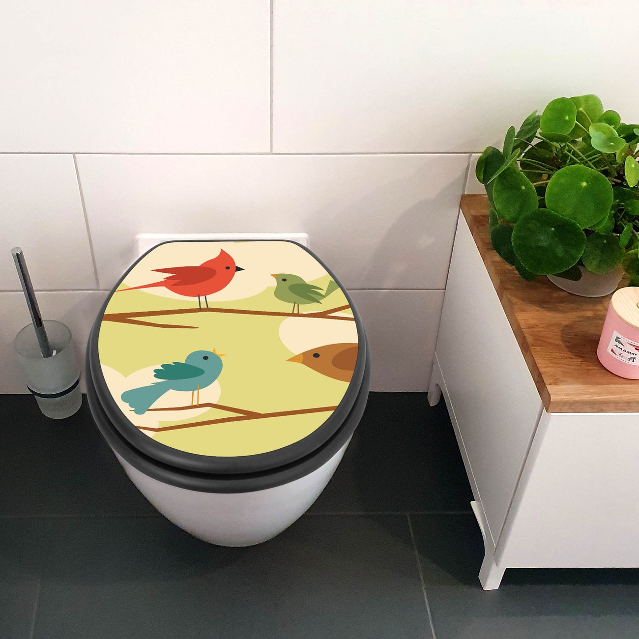 WC Sitz Anthrazit mit Absenkautomatik Motiv Fünf Vögel