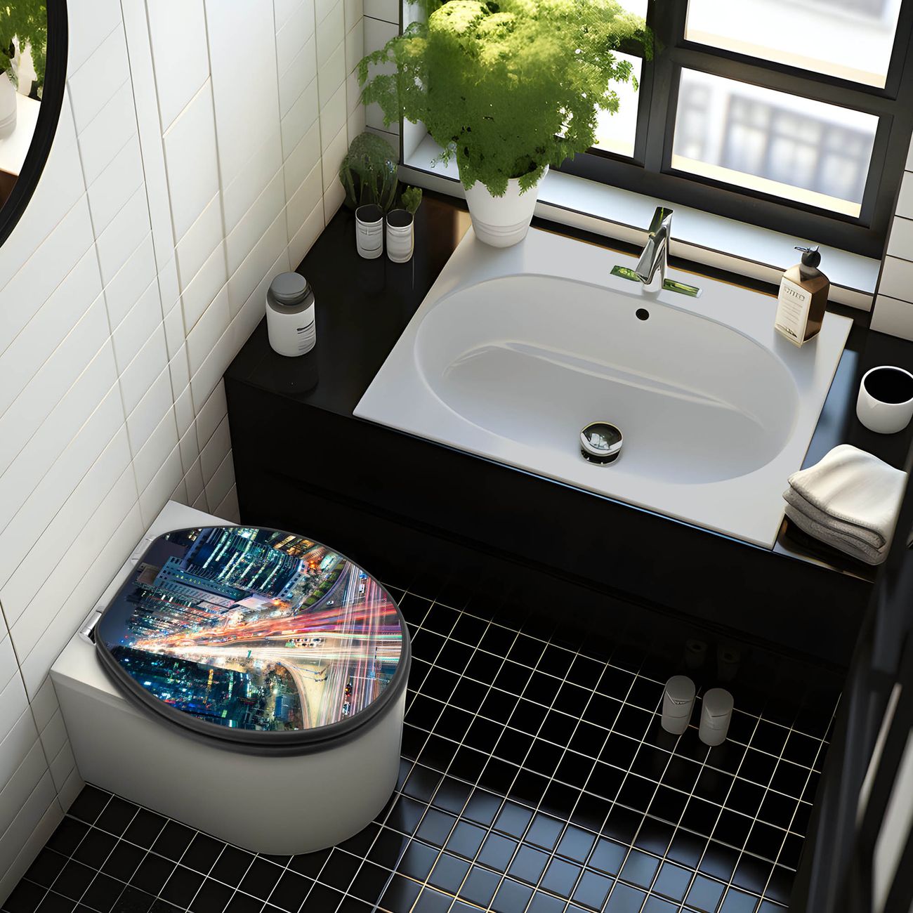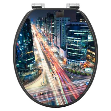 WC Sitz Anthrazit mit Absenkautomatik Motiv Gangnam Bei Nacht