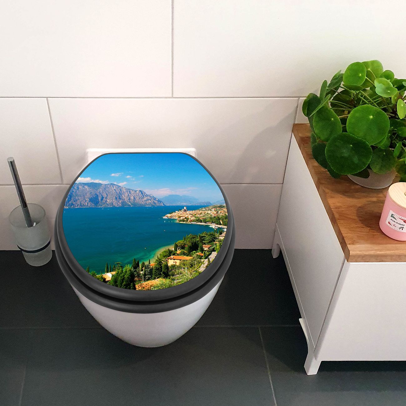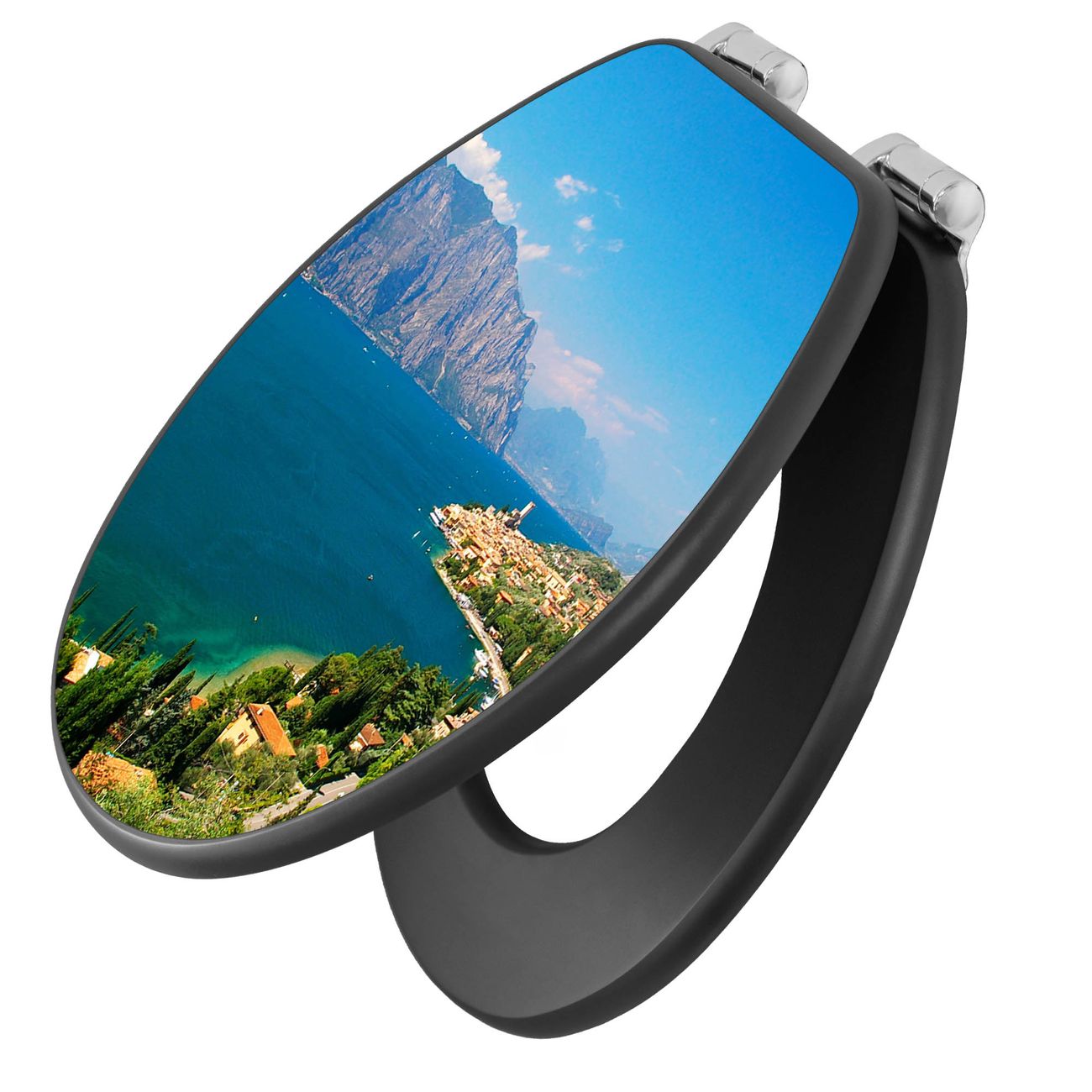WC Sitz Anthrazit mit Absenkautomatik Motiv Gardasee