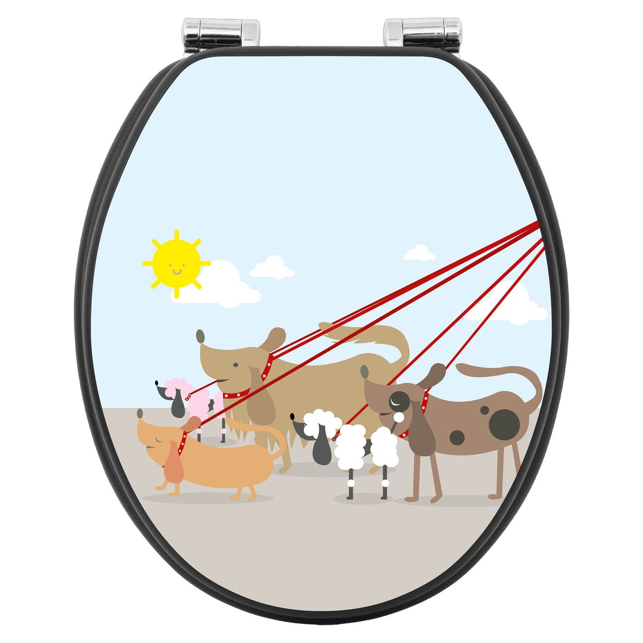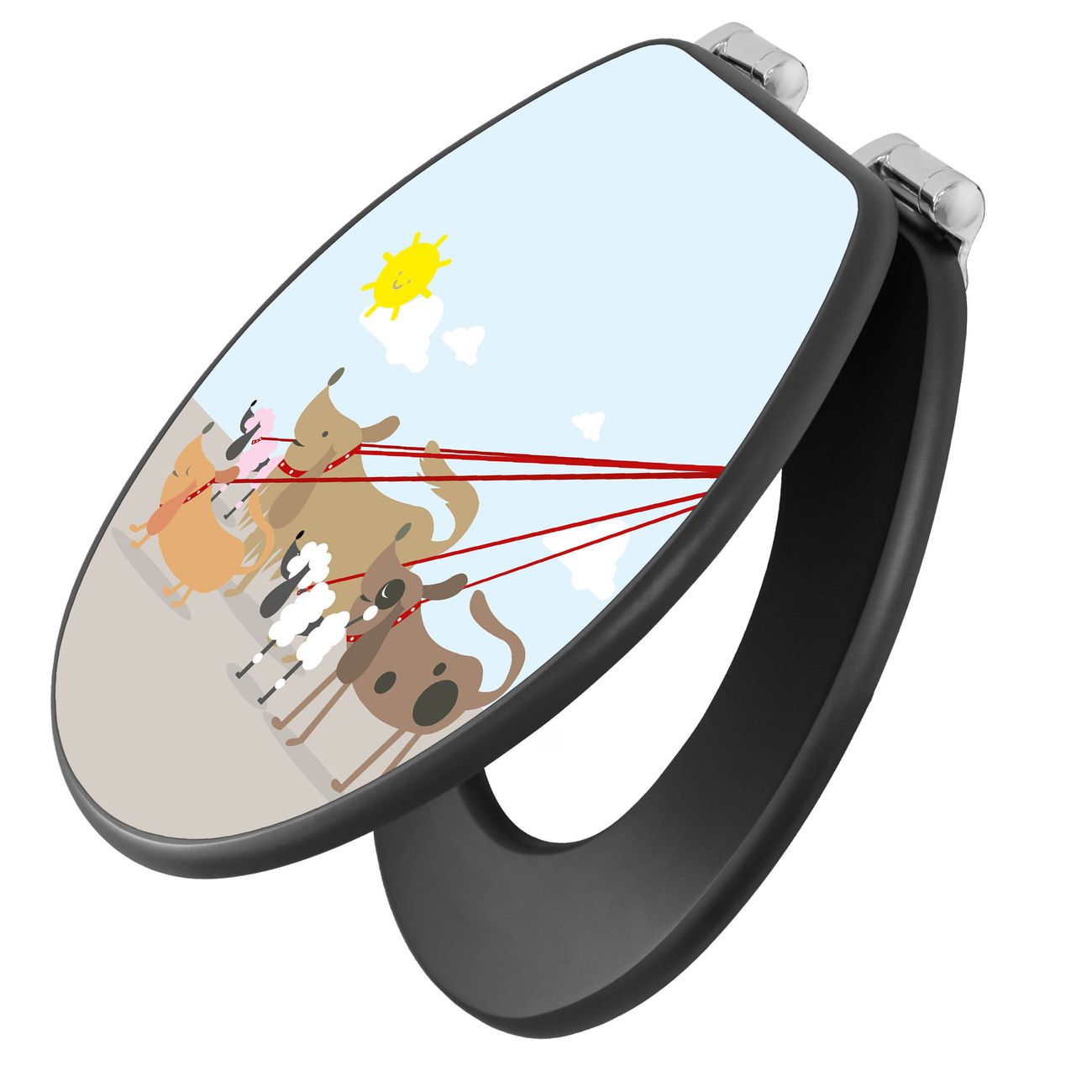 WC Sitz Anthrazit mit Absenkautomatik Motiv Gassi Gehen
