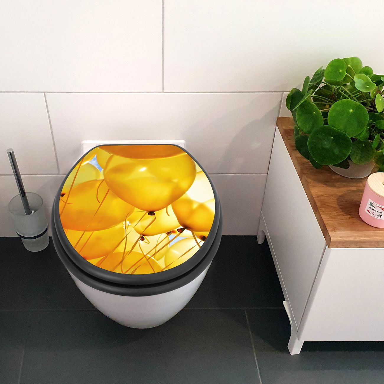 WC Sitz Anthrazit mit Absenkautomatik Motiv Gelbe Luftballons