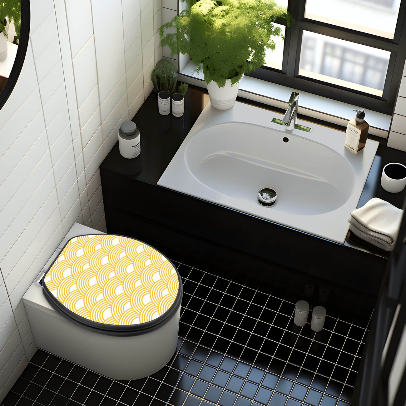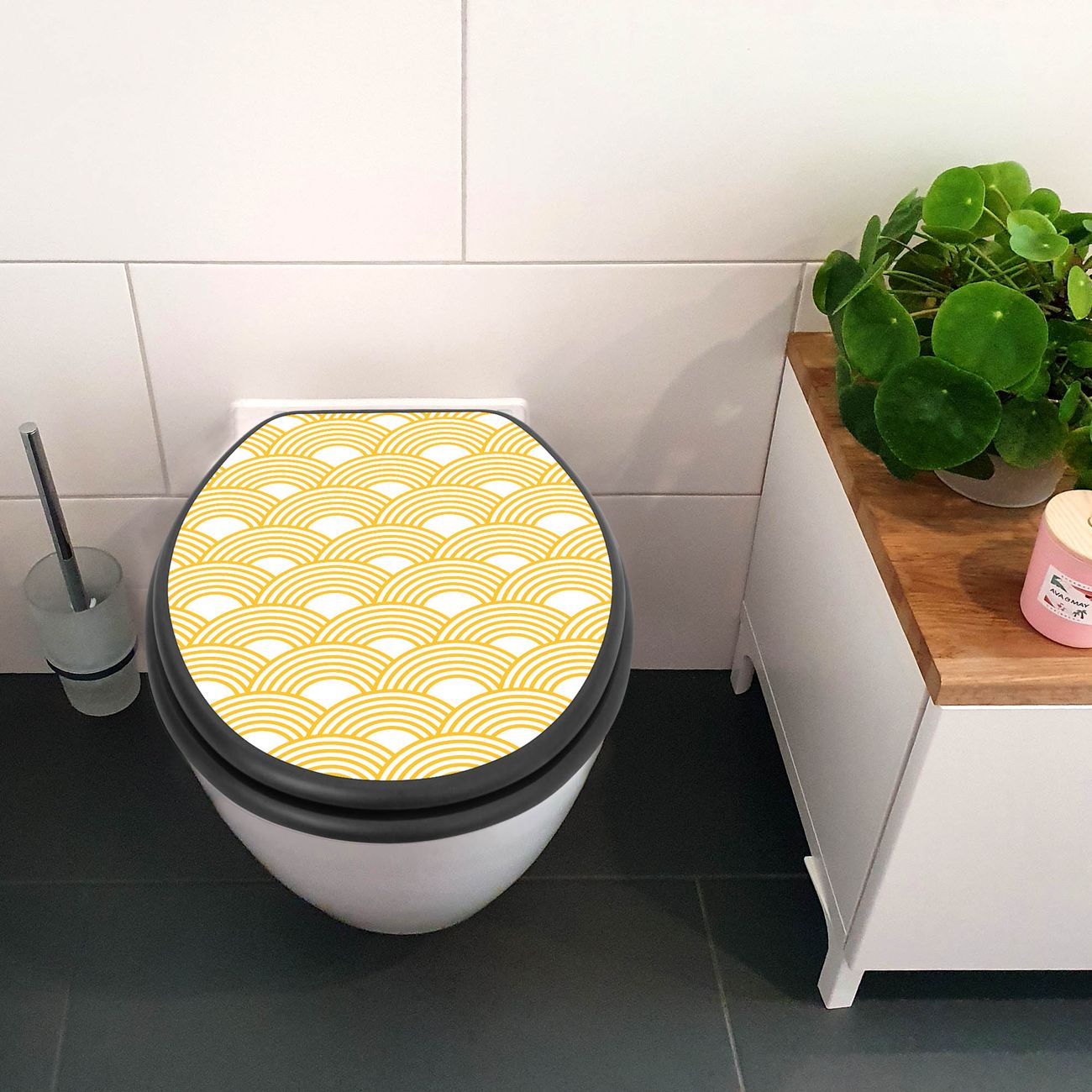 WC Sitz Anthrazit mit Absenkautomatik Motiv Gelbe Wellen