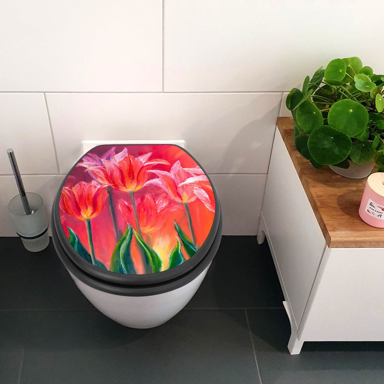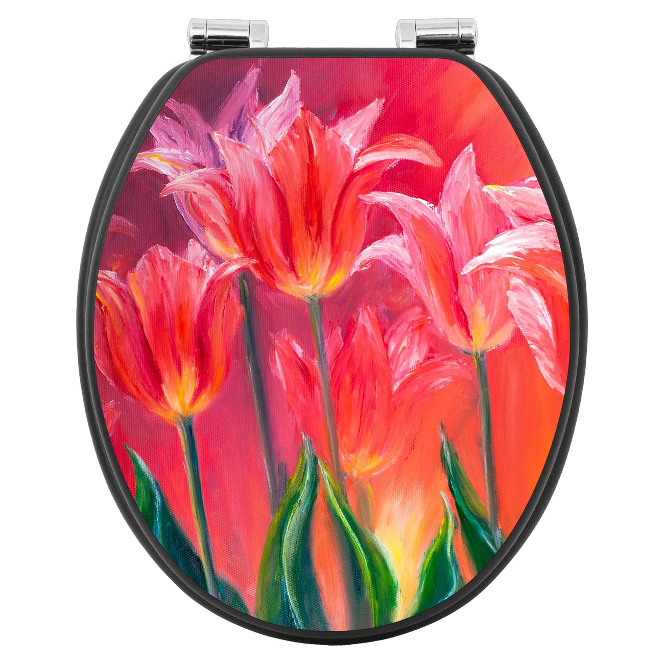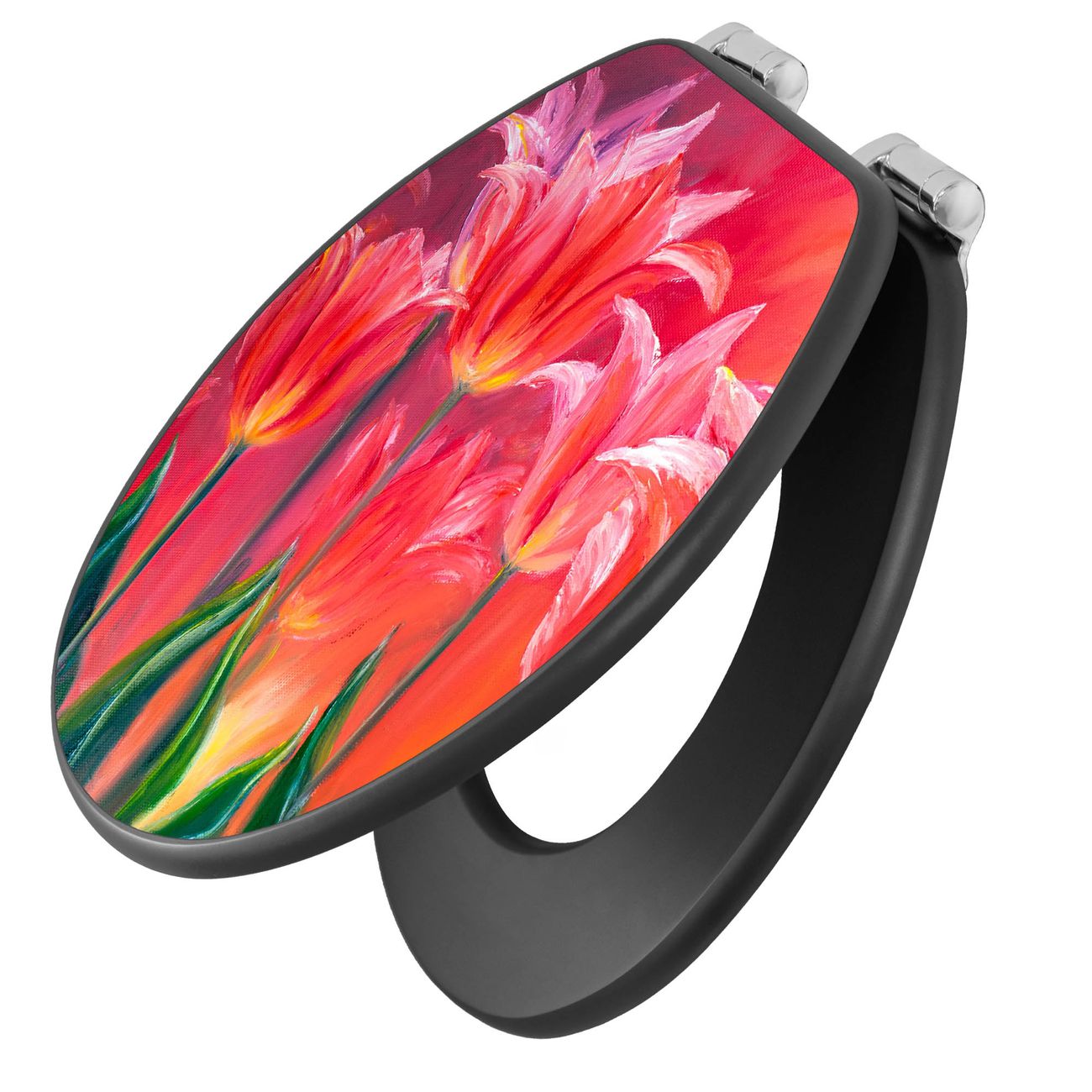WC Sitz Anthrazit mit Absenkautomatik Motiv Gemalte Tulpen