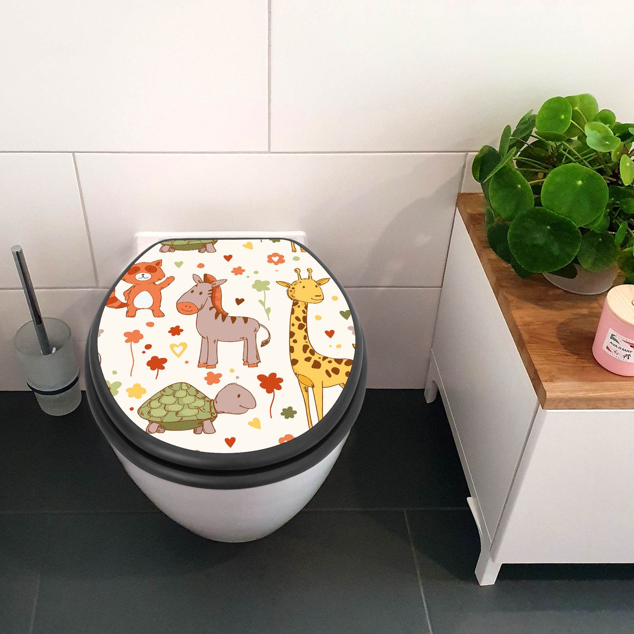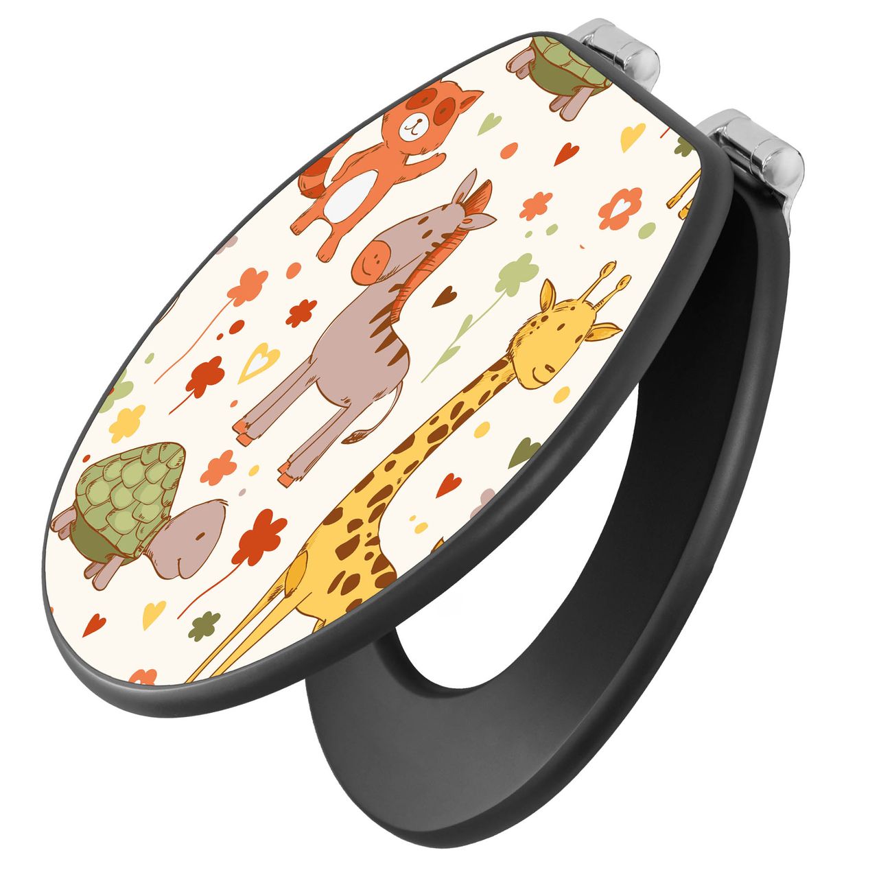 WC Sitz Anthrazit mit Absenkautomatik Motiv Giraffe & Co
