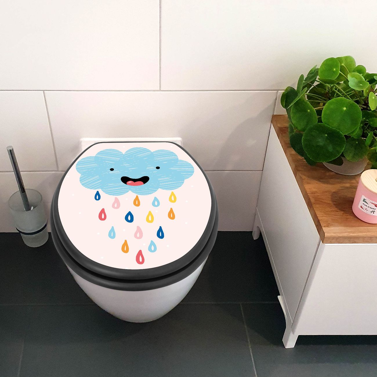 WC Sitz Anthrazit mit Absenkautomatik Motiv glückliche Regenwolke