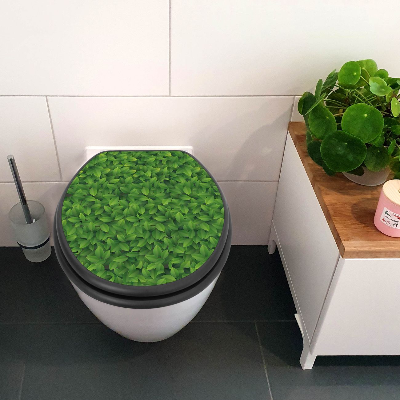WC Sitz Anthrazit mit Absenkautomatik Motiv Grüne Blätter