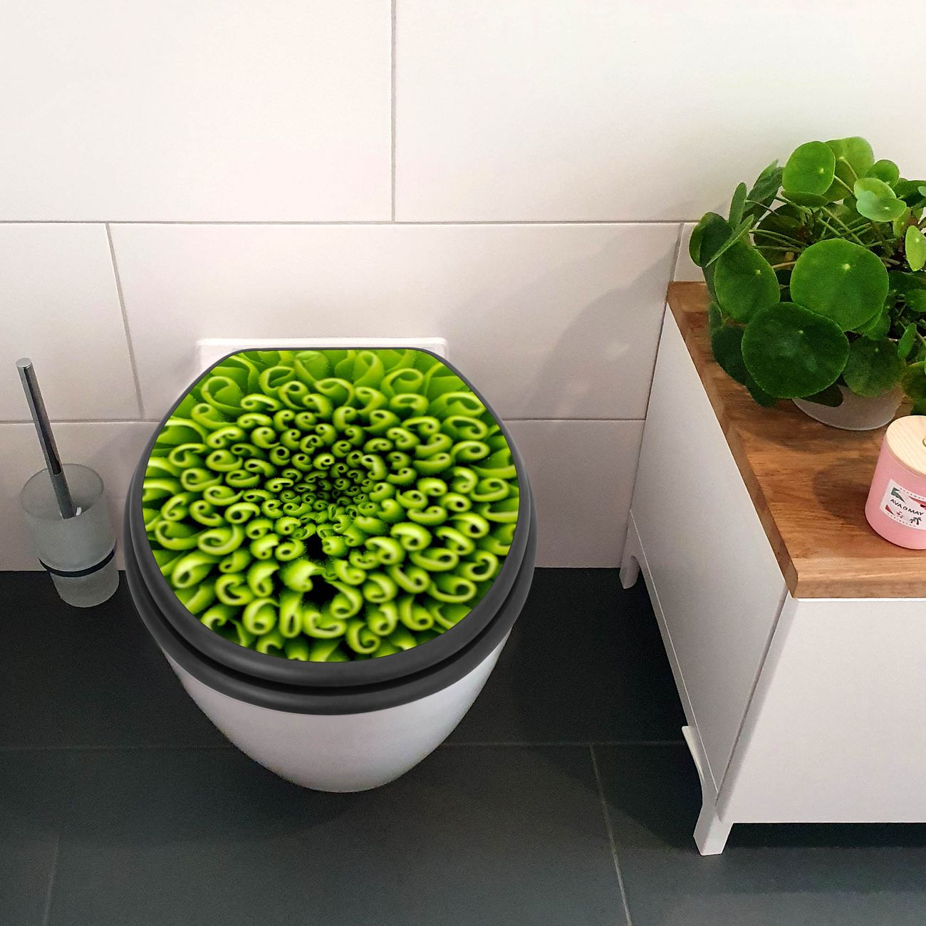 WC Sitz Anthrazit mit Absenkautomatik Motiv Grüne Chrysantheme