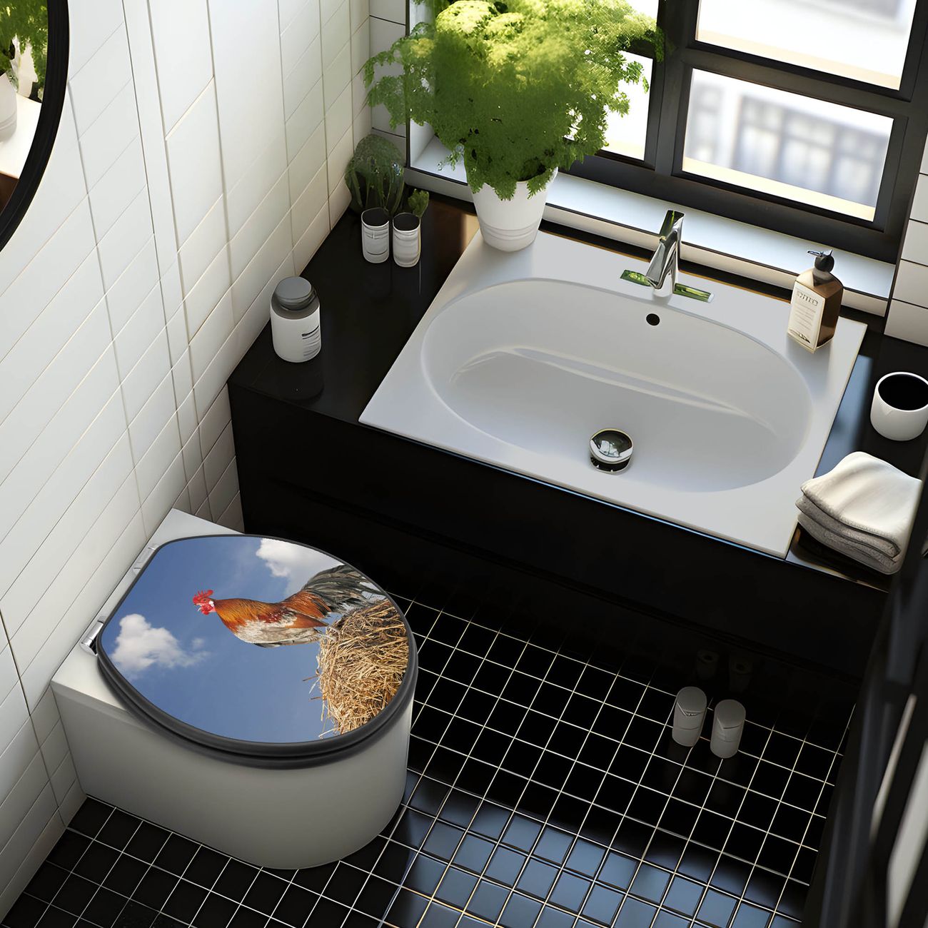 WC Sitz Anthrazit mit Absenkautomatik Motiv Hahn