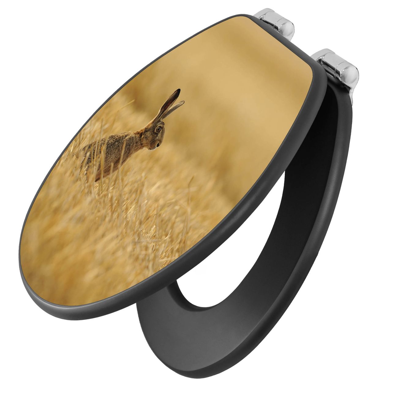 WC Sitz Anthrazit mit Absenkautomatik Motiv Hase