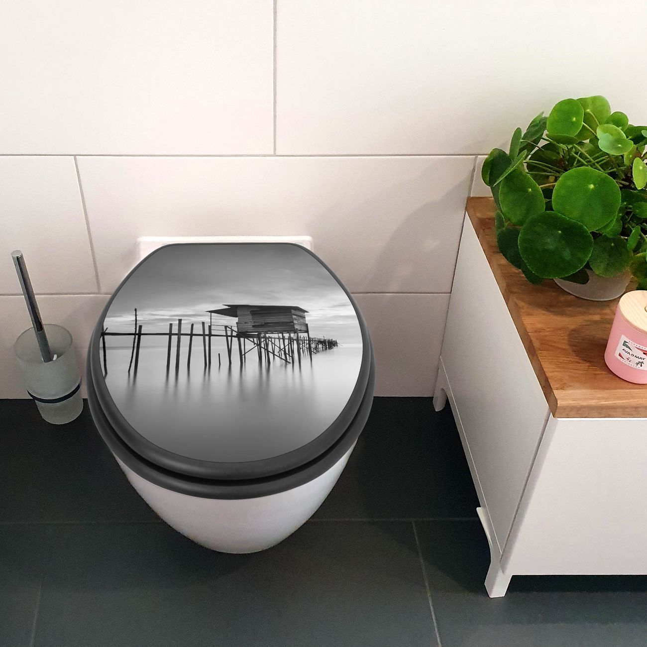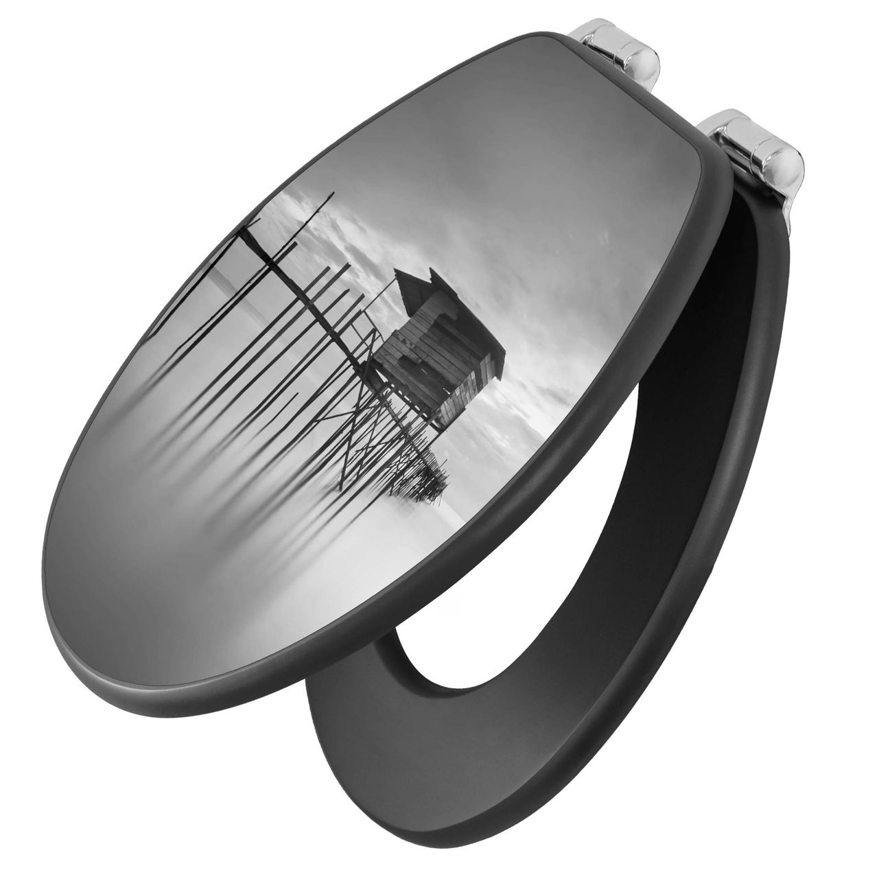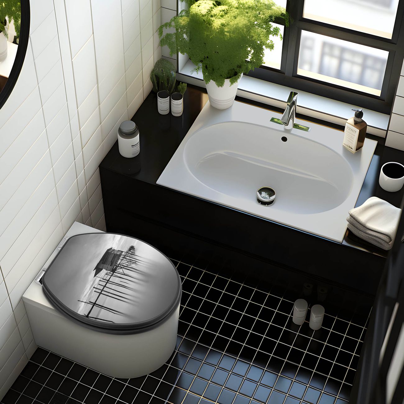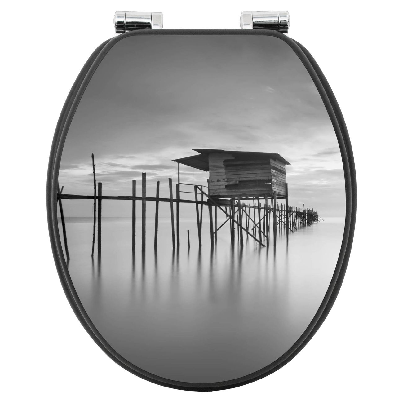 WC Sitz Anthrazit mit Absenkautomatik Motiv Haus am See