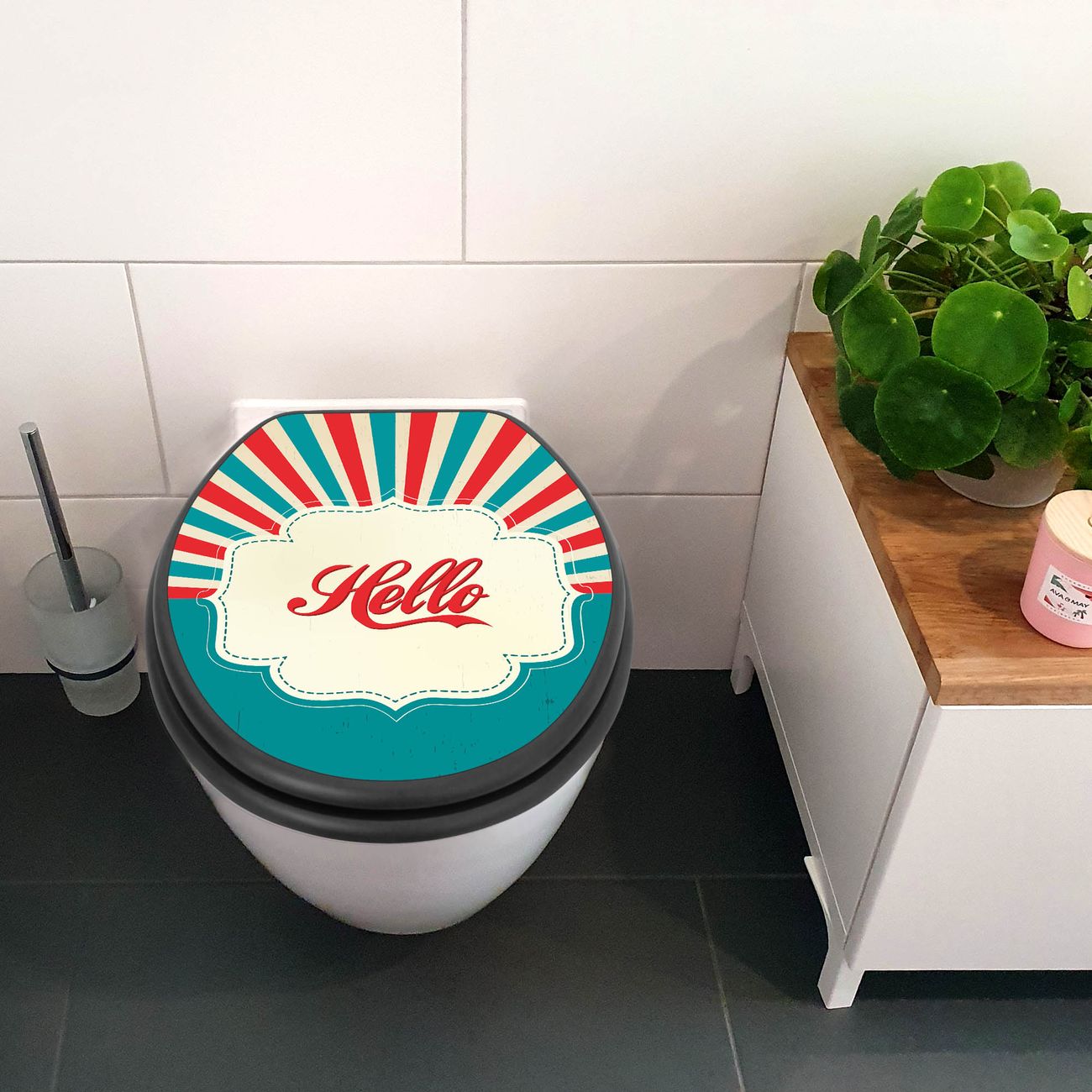 WC Sitz Anthrazit mit Absenkautomatik Motiv Hello