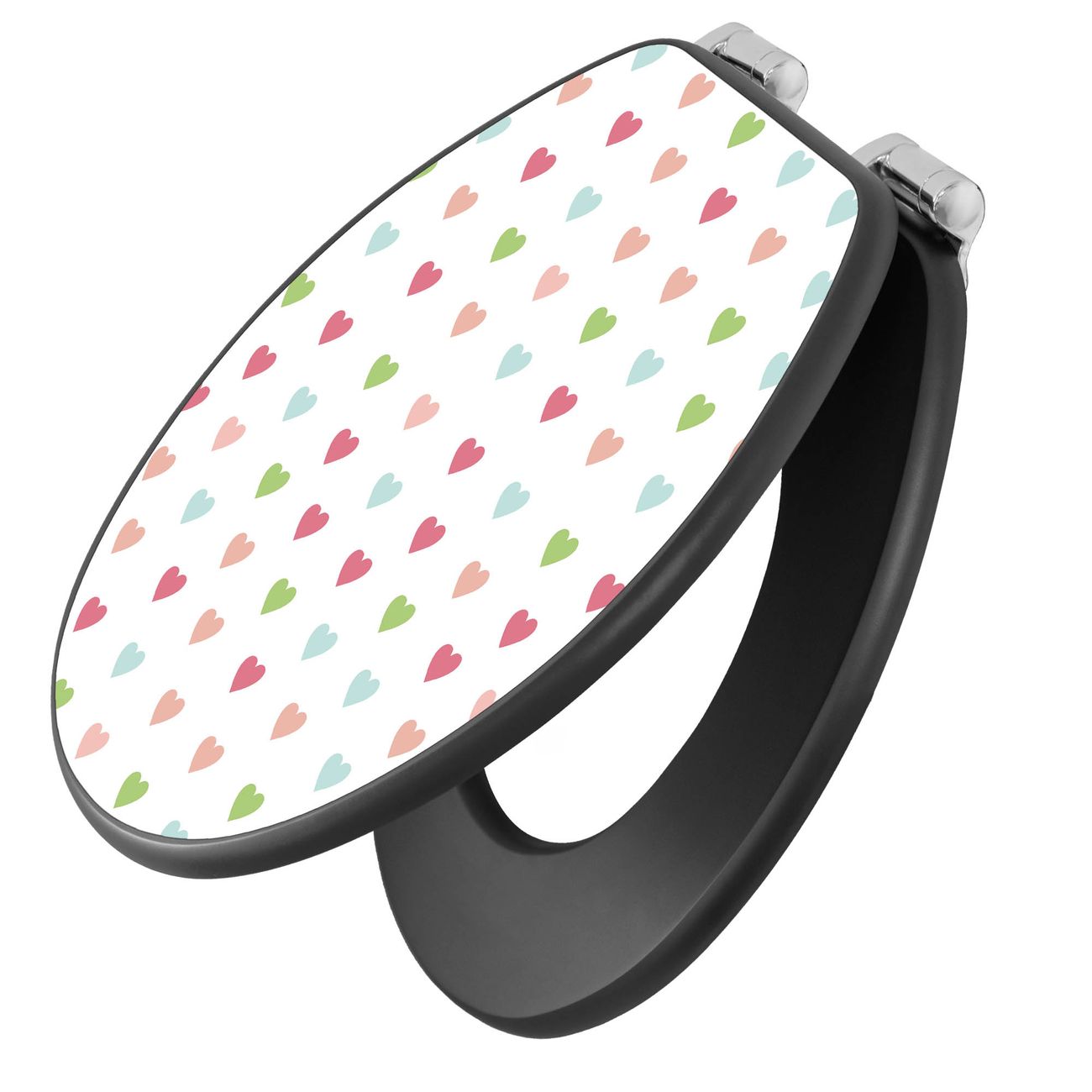 WC Sitz Anthrazit mit Absenkautomatik Motiv Herzen Auf Weiß