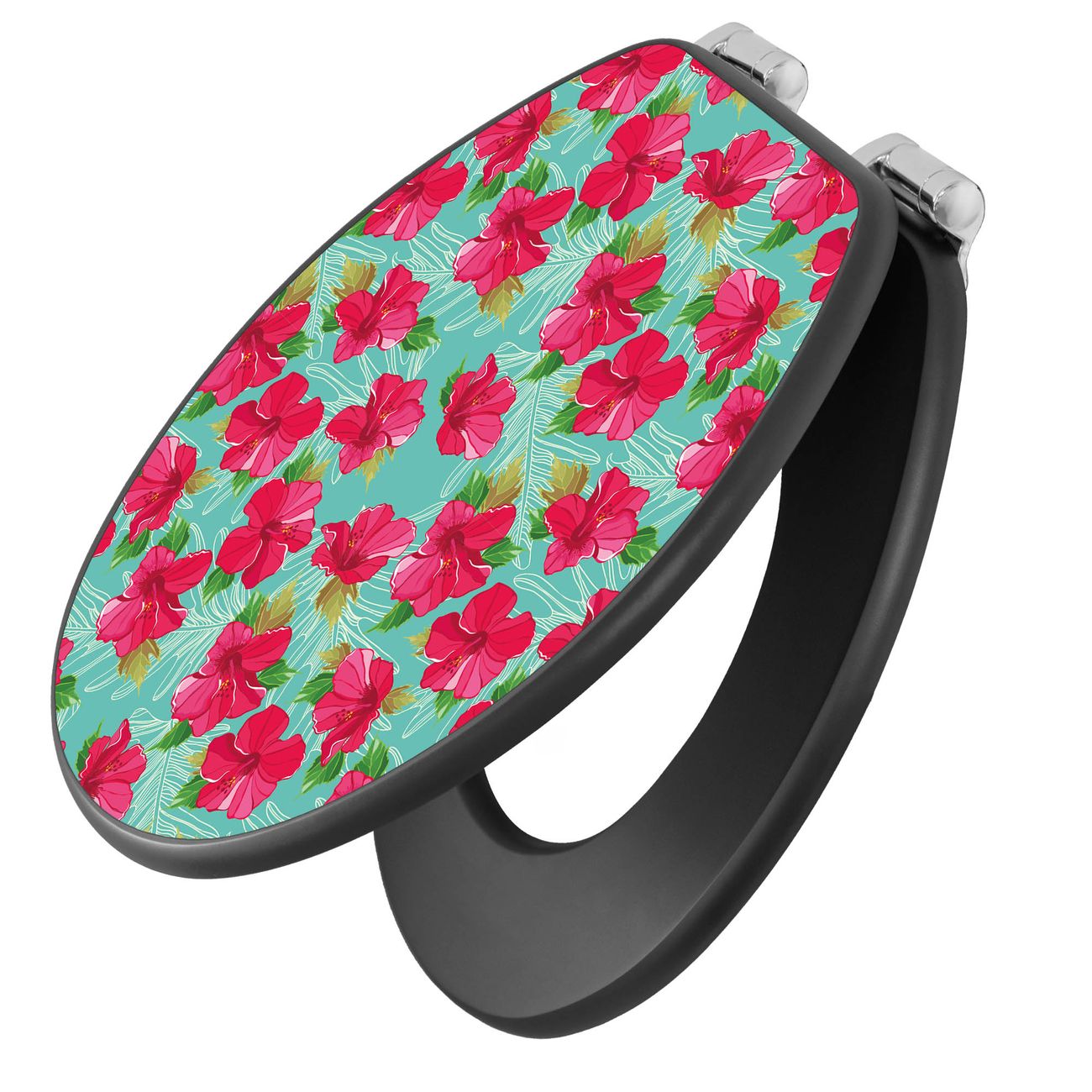 WC Sitz Anthrazit mit Absenkautomatik Motiv Hibiskus