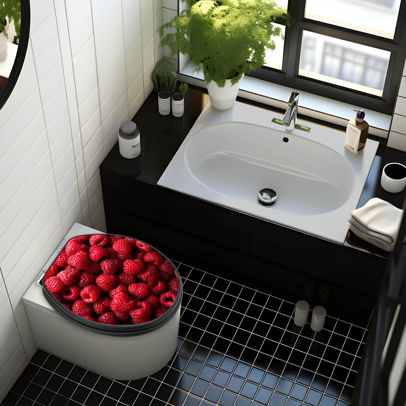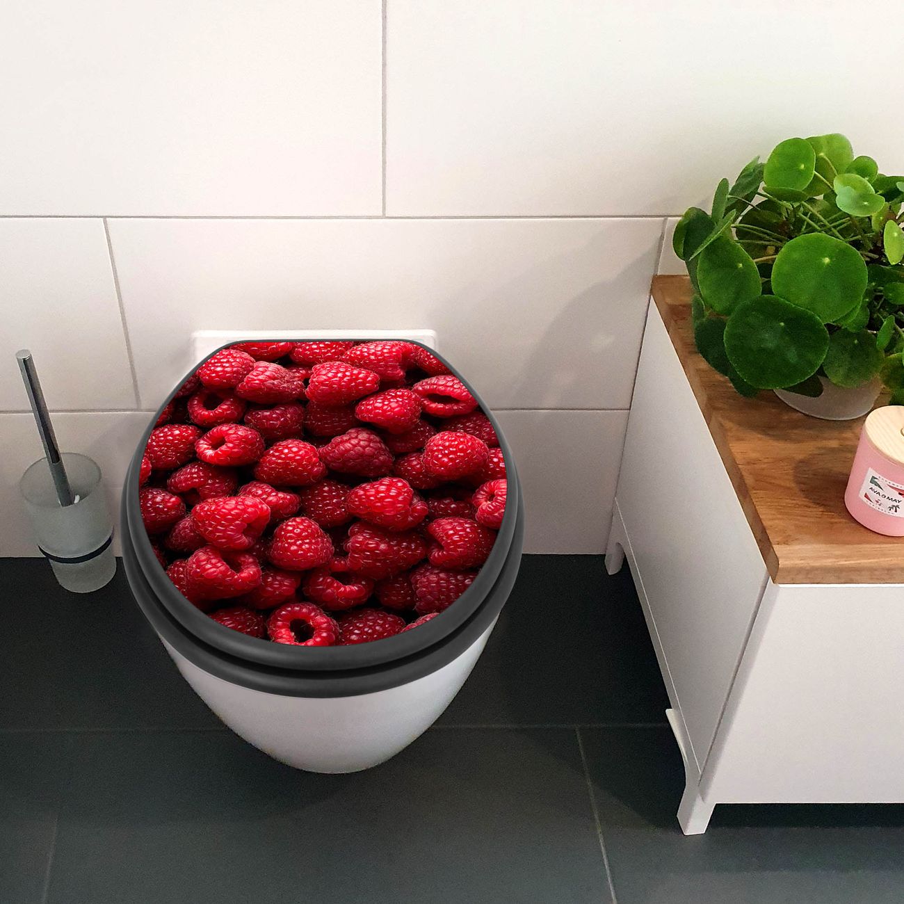 WC Sitz Anthrazit mit Absenkautomatik Motiv Himbeeren