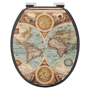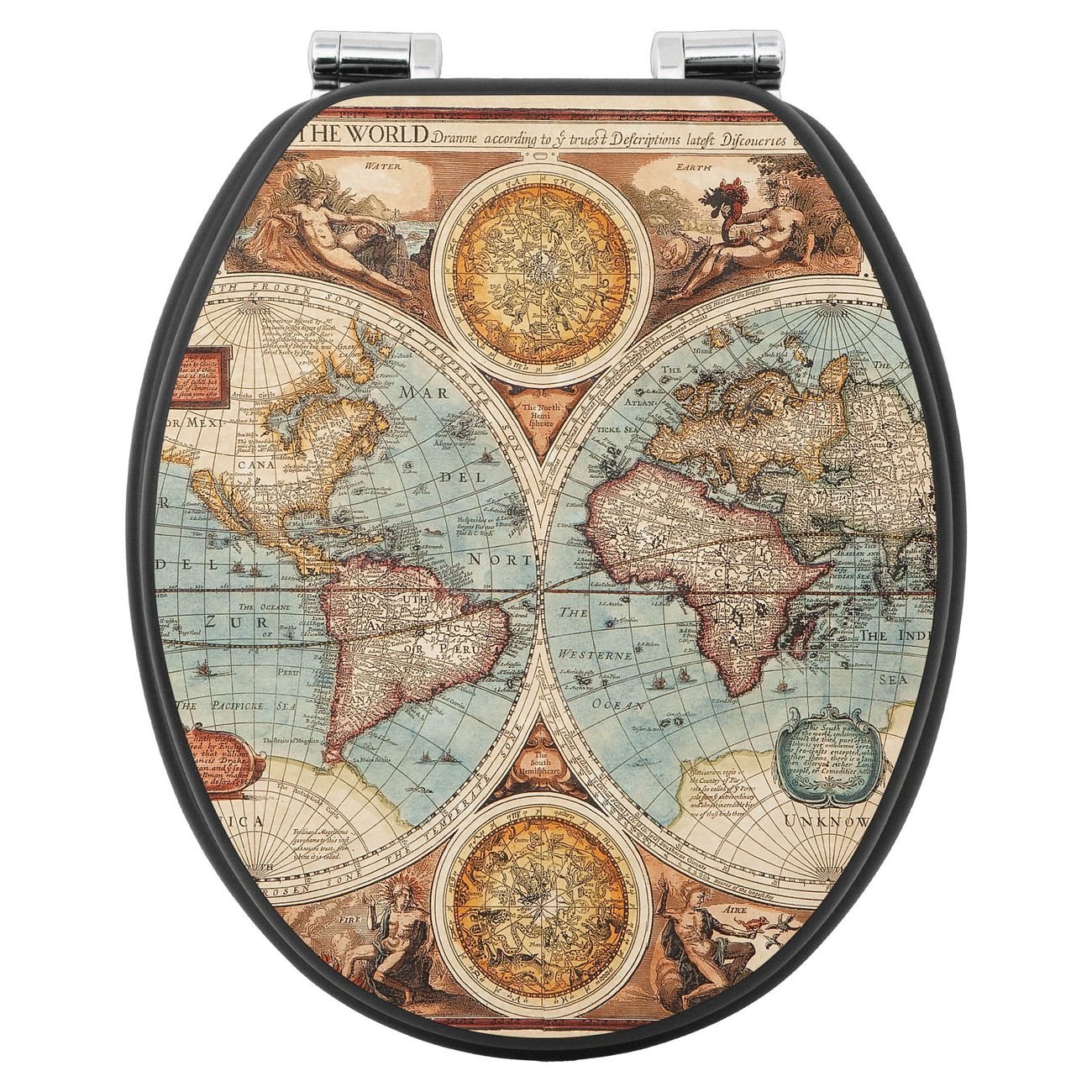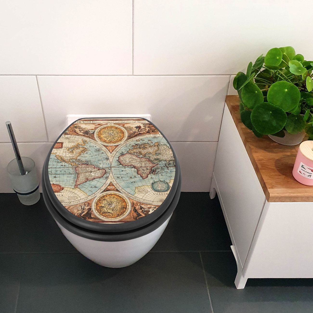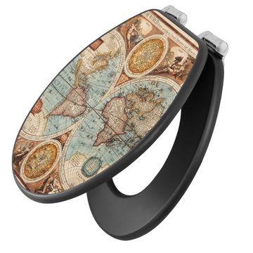 WC Sitz Anthrazit mit Absenkautomatik Motiv Historische Weltkarte