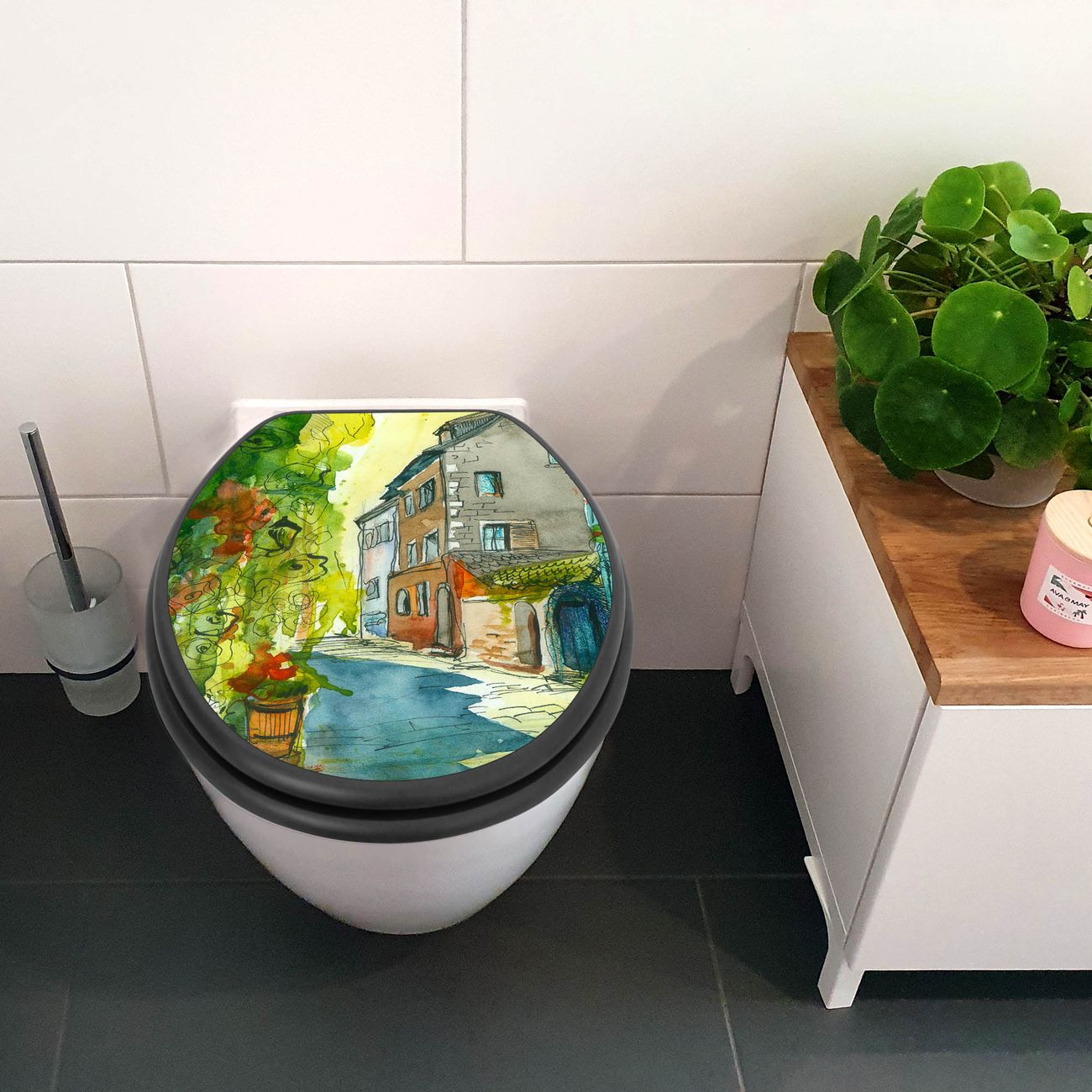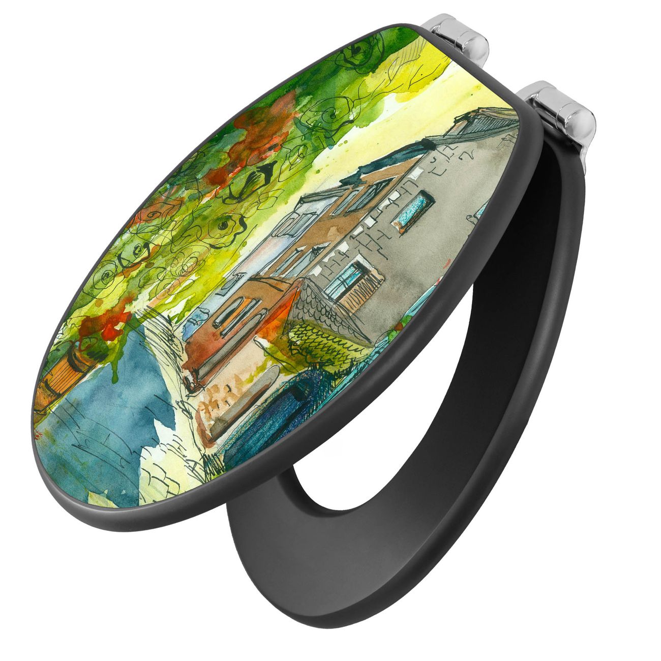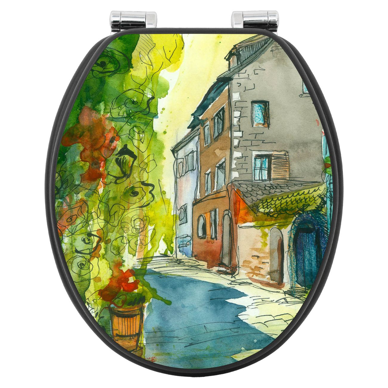 WC Sitz Anthrazit mit Absenkautomatik Motiv Historischer Stadtkern