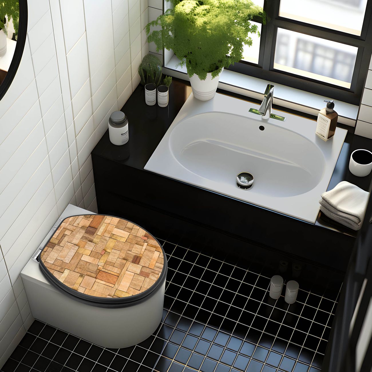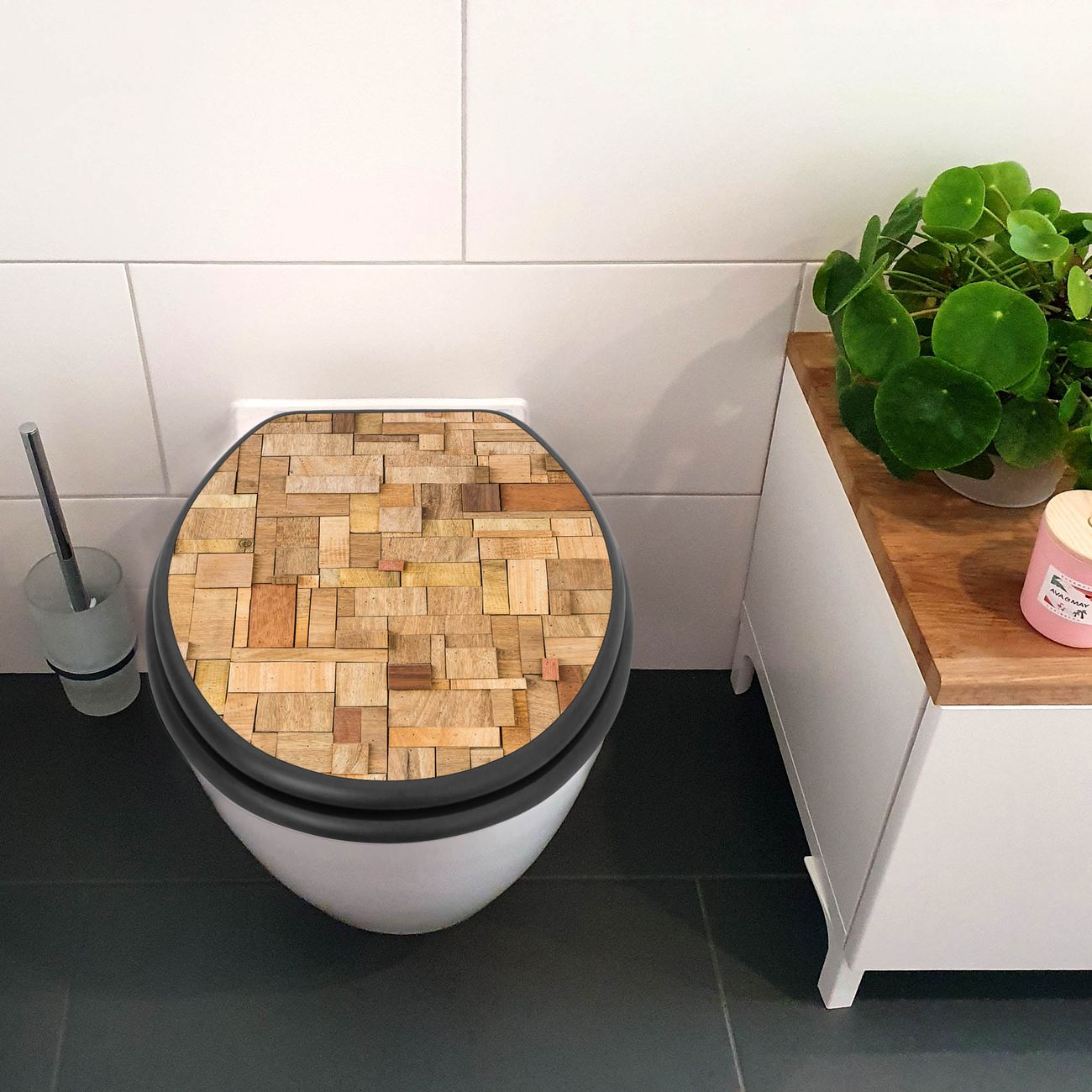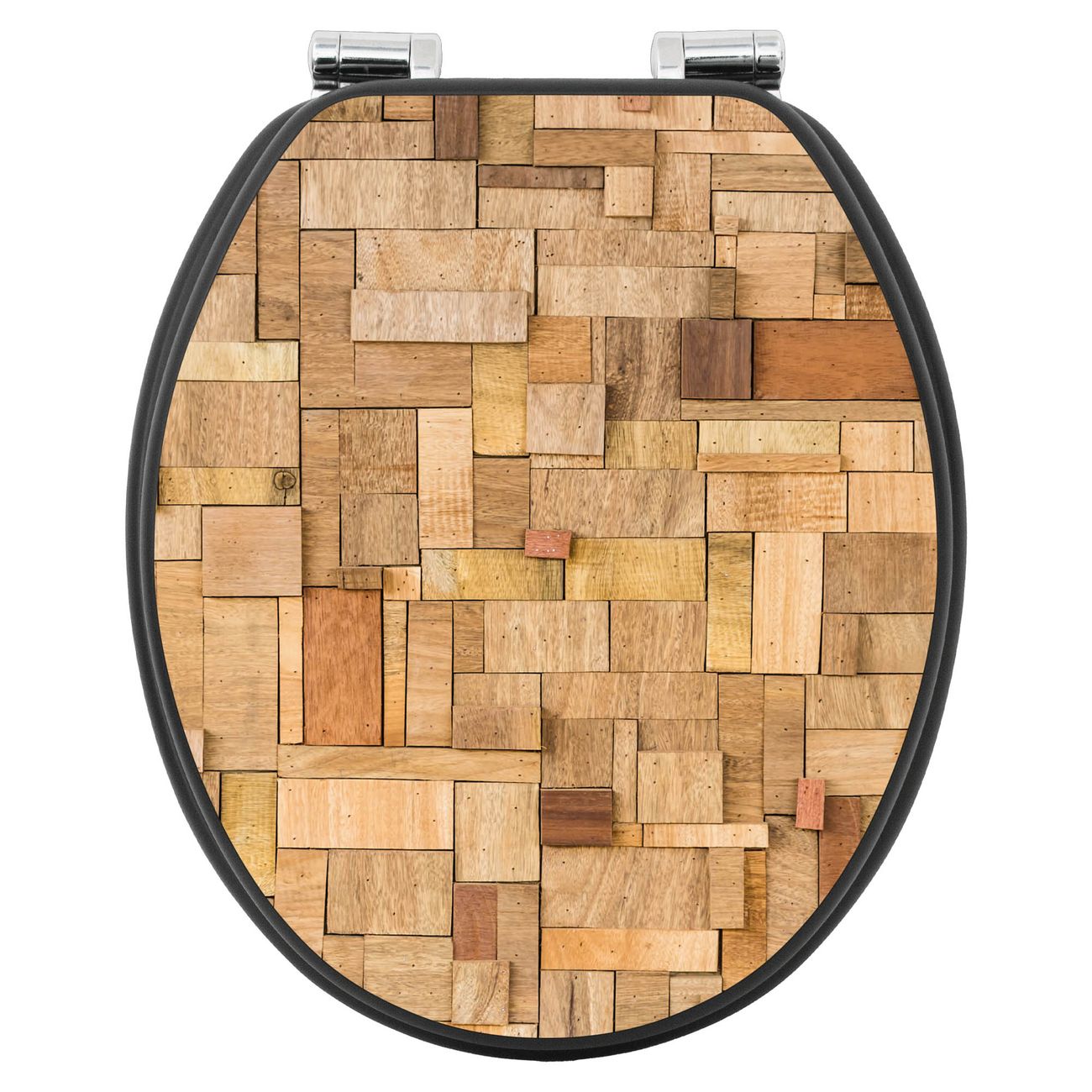 WC Sitz Anthrazit mit Absenkautomatik Motiv Hölzernes Flickwerk