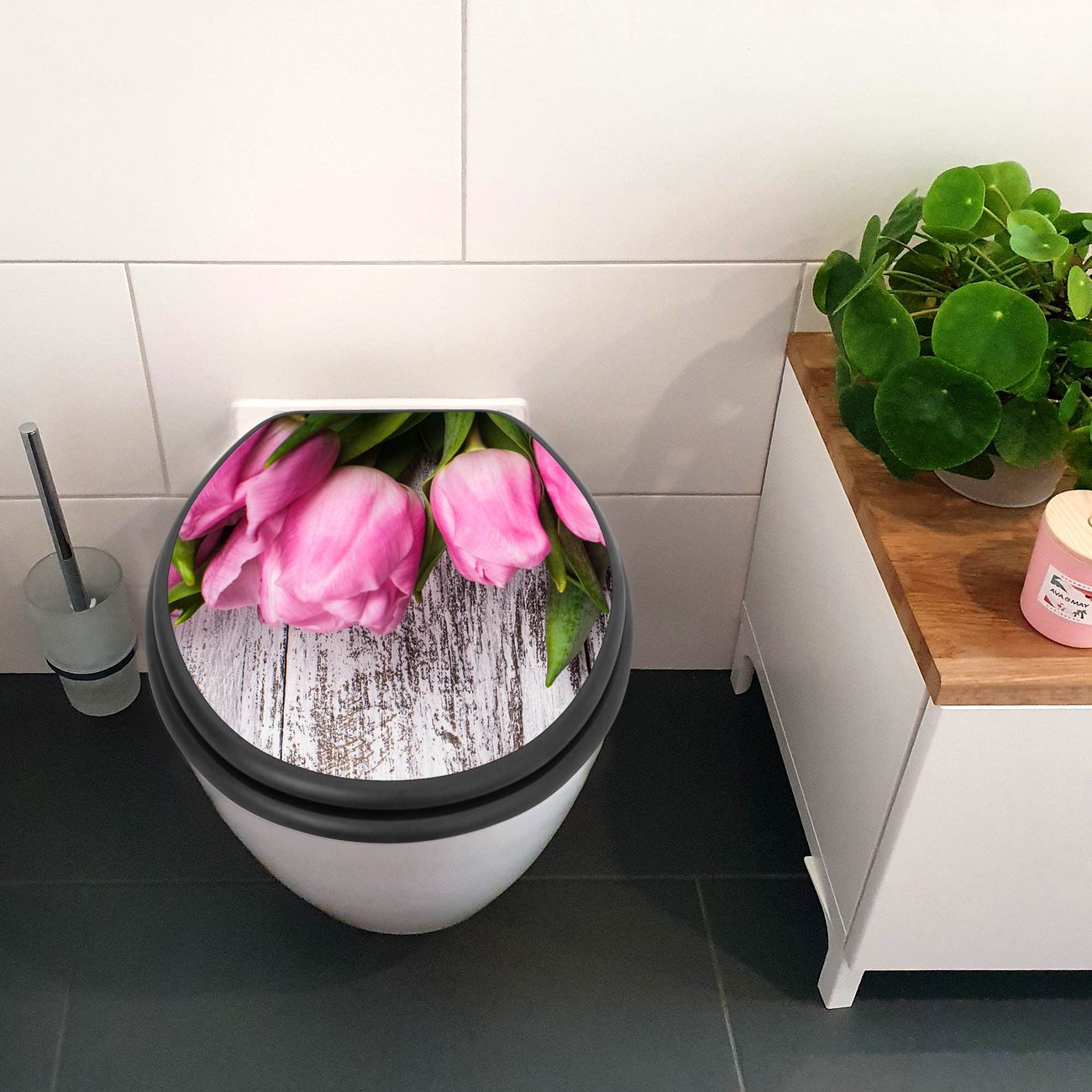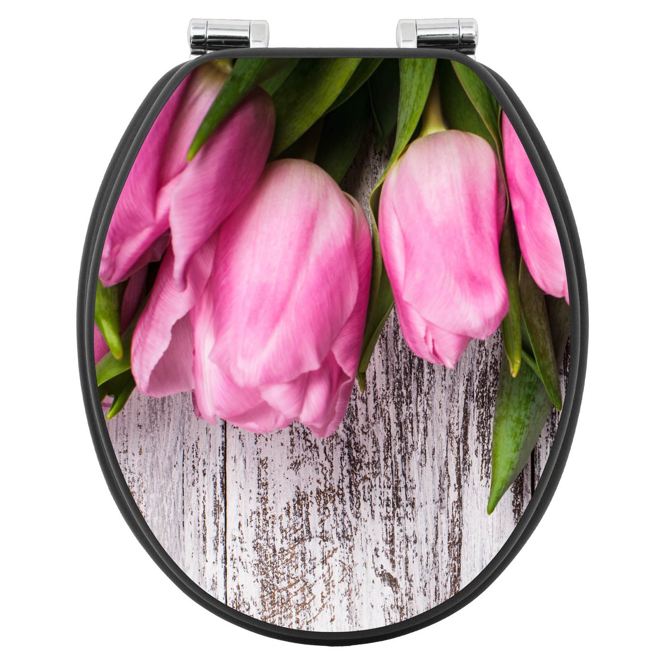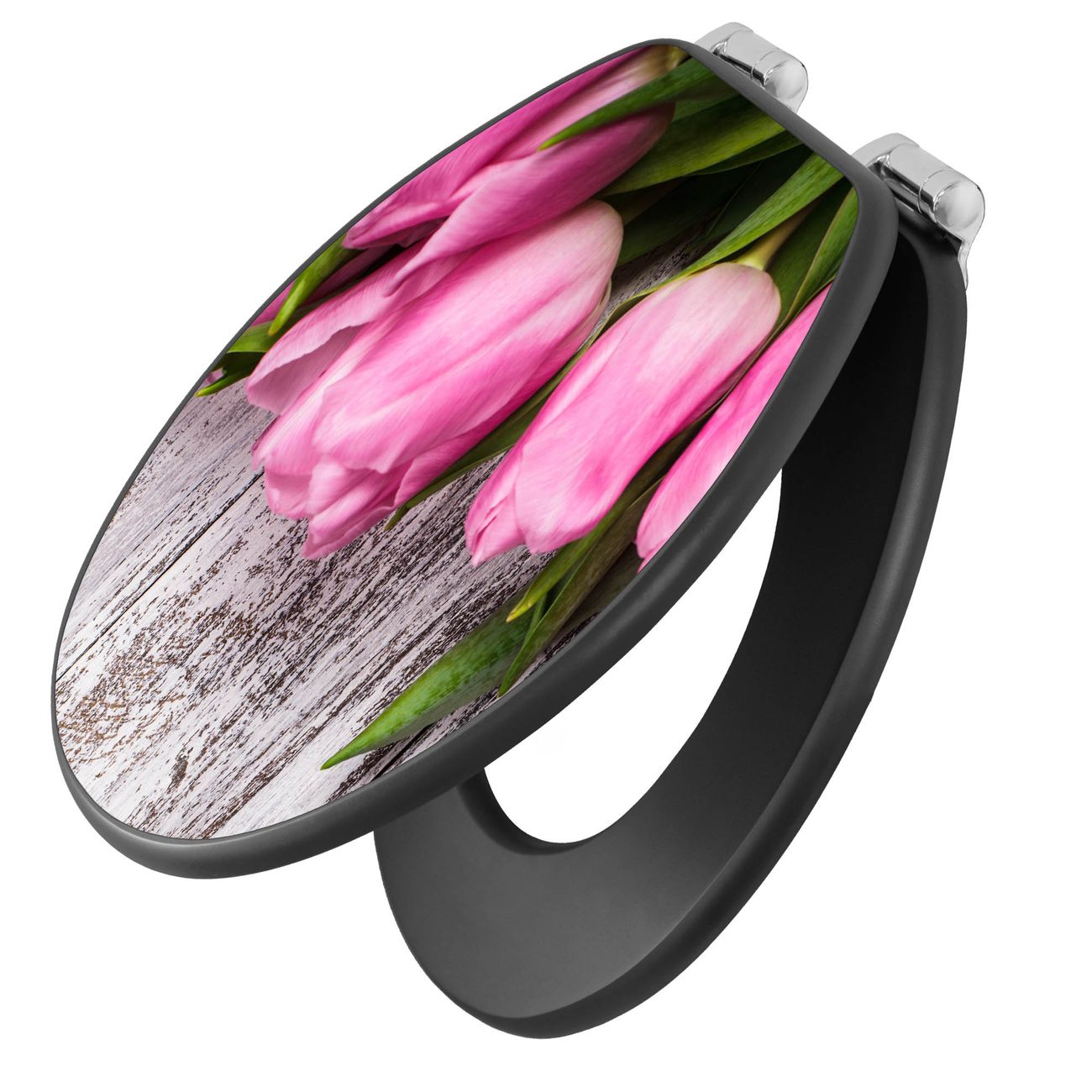WC Sitz Anthrazit mit Absenkautomatik Motiv Holz und Tulpen