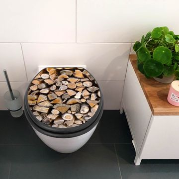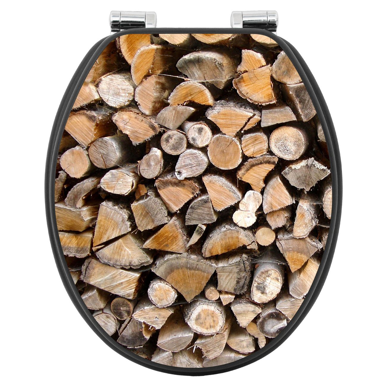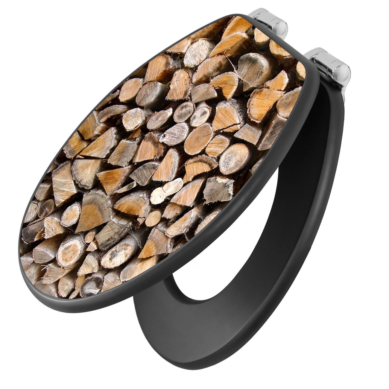 WC Sitz Anthrazit mit Absenkautomatik Motiv Holzstapel