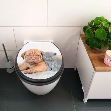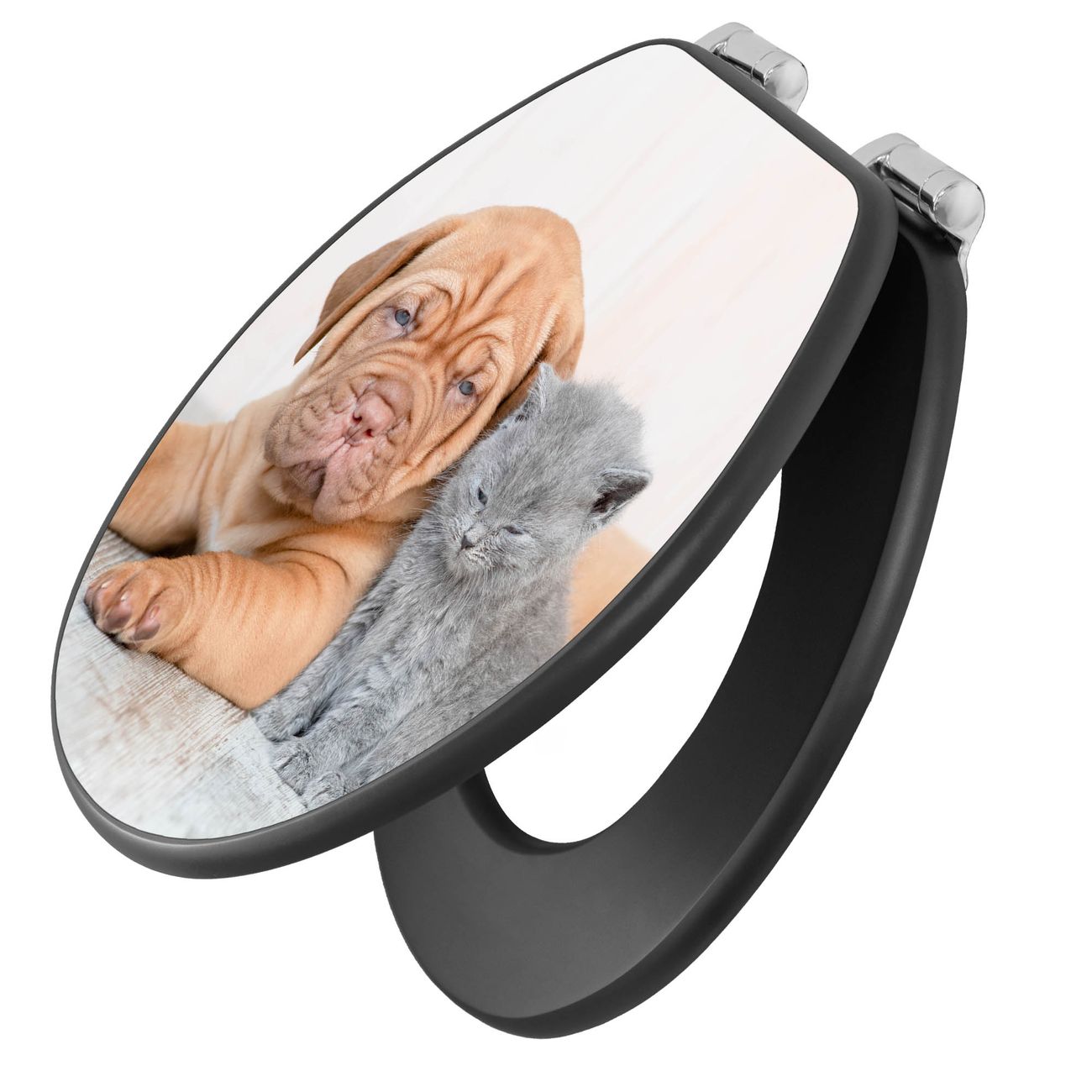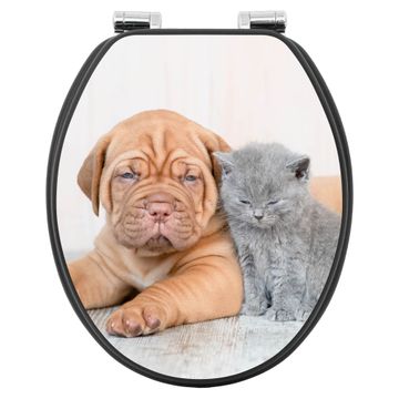 WC Sitz Anthrazit mit Absenkautomatik Motiv Hund und Katze