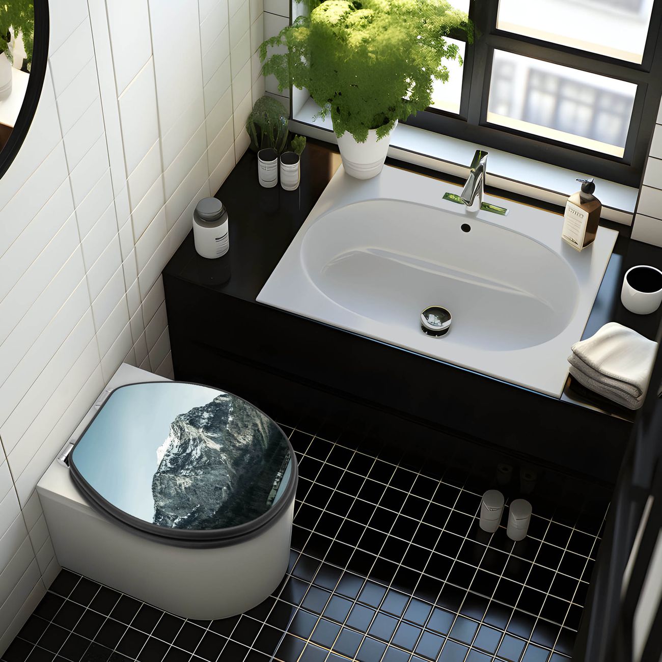 WC Sitz Anthrazit mit Absenkautomatik Motiv Im Schatten des Bergs