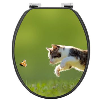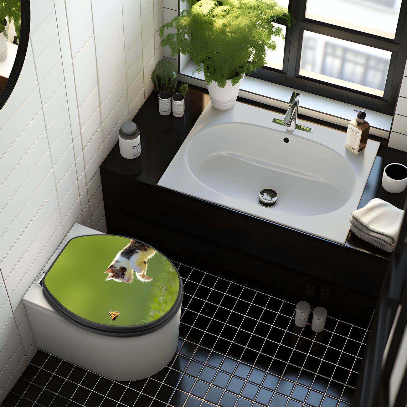 WC Sitz Anthrazit mit Absenkautomatik Motiv Jagende Katze