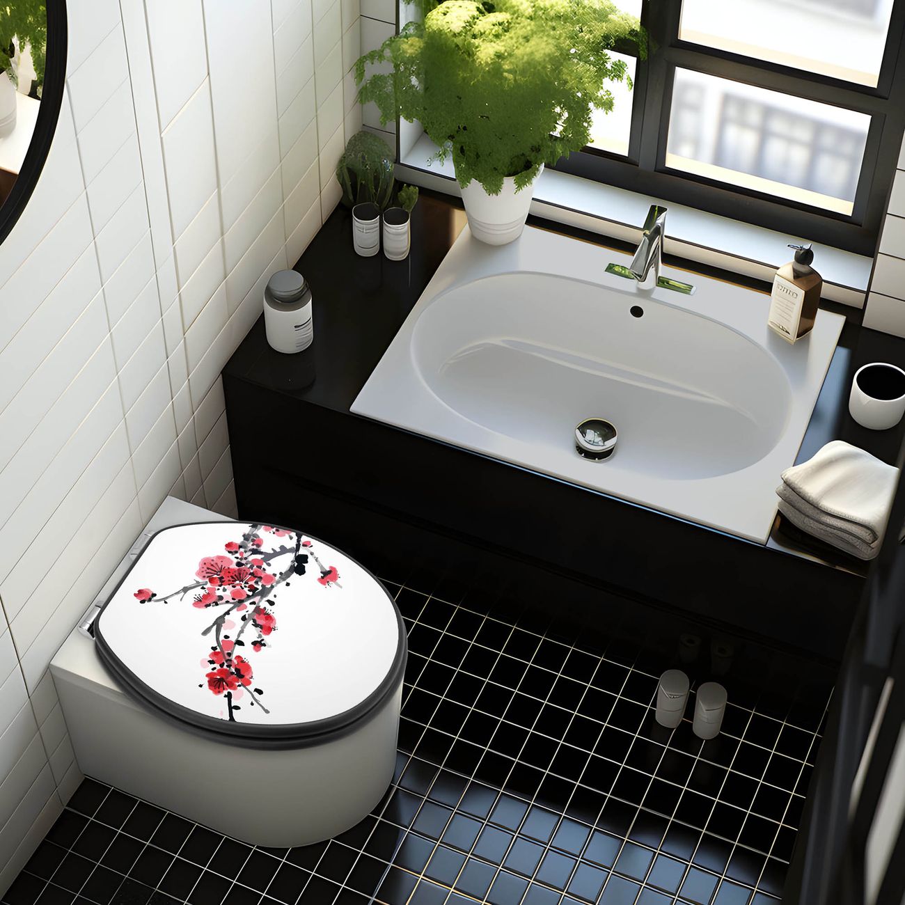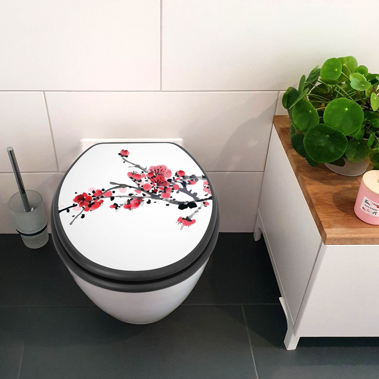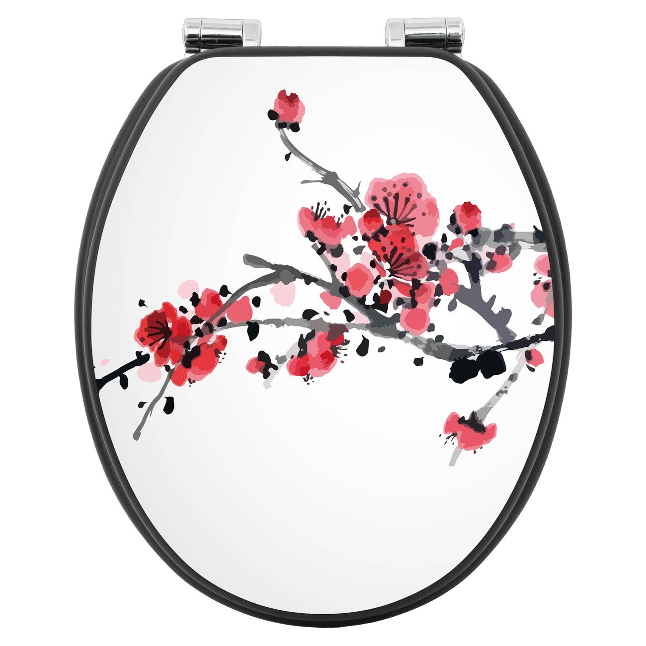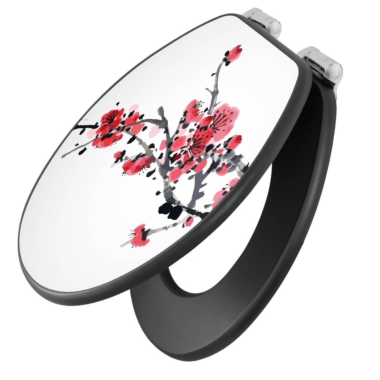 WC Sitz Anthrazit mit Absenkautomatik Motiv Japanische Blüten 2