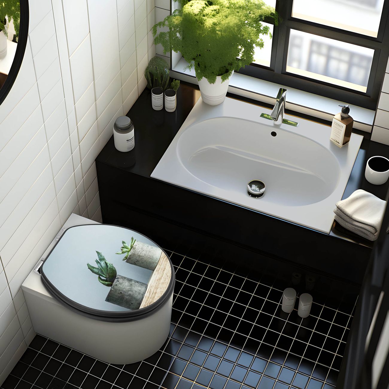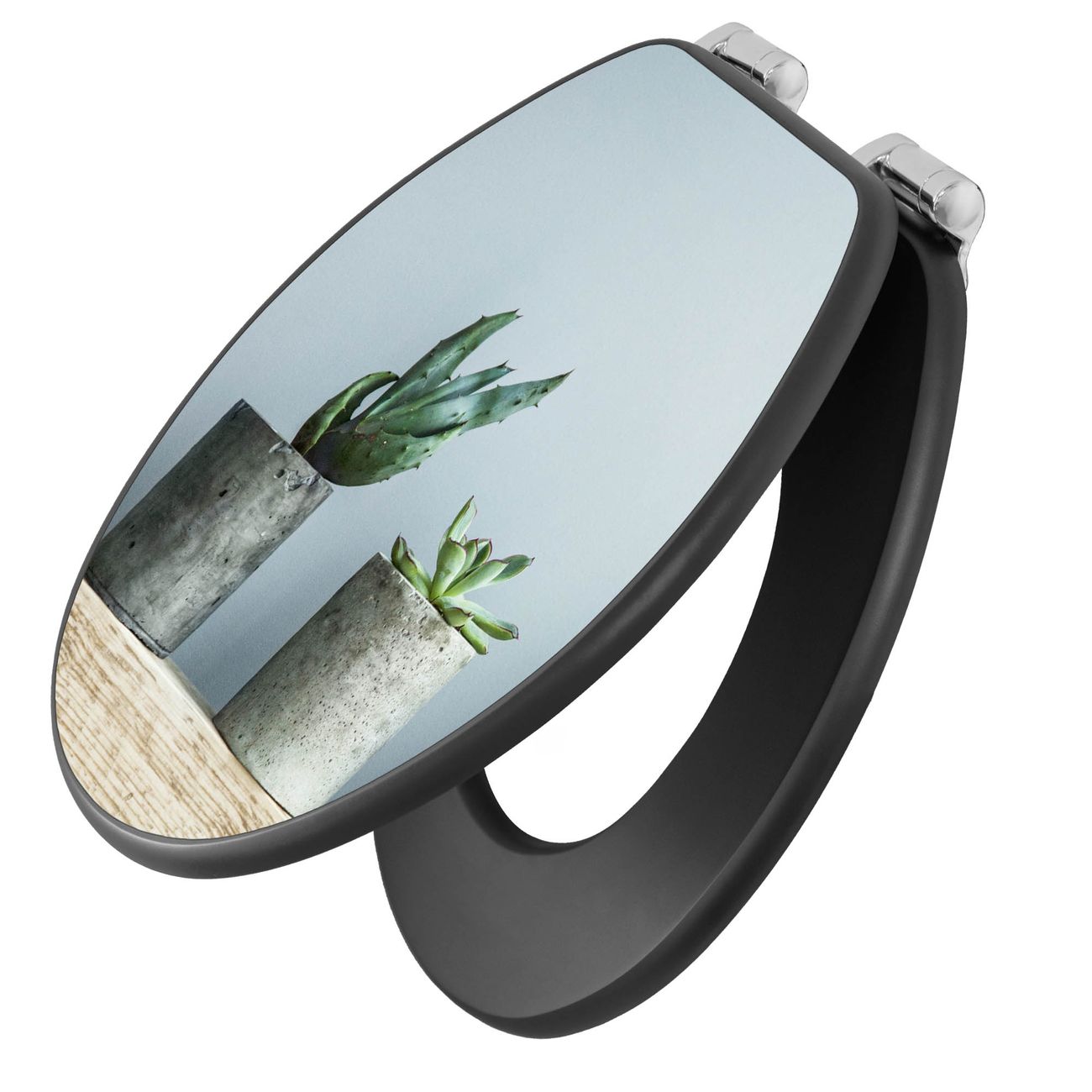WC Sitz Anthrazit mit Absenkautomatik Motiv Kakteen in Beton